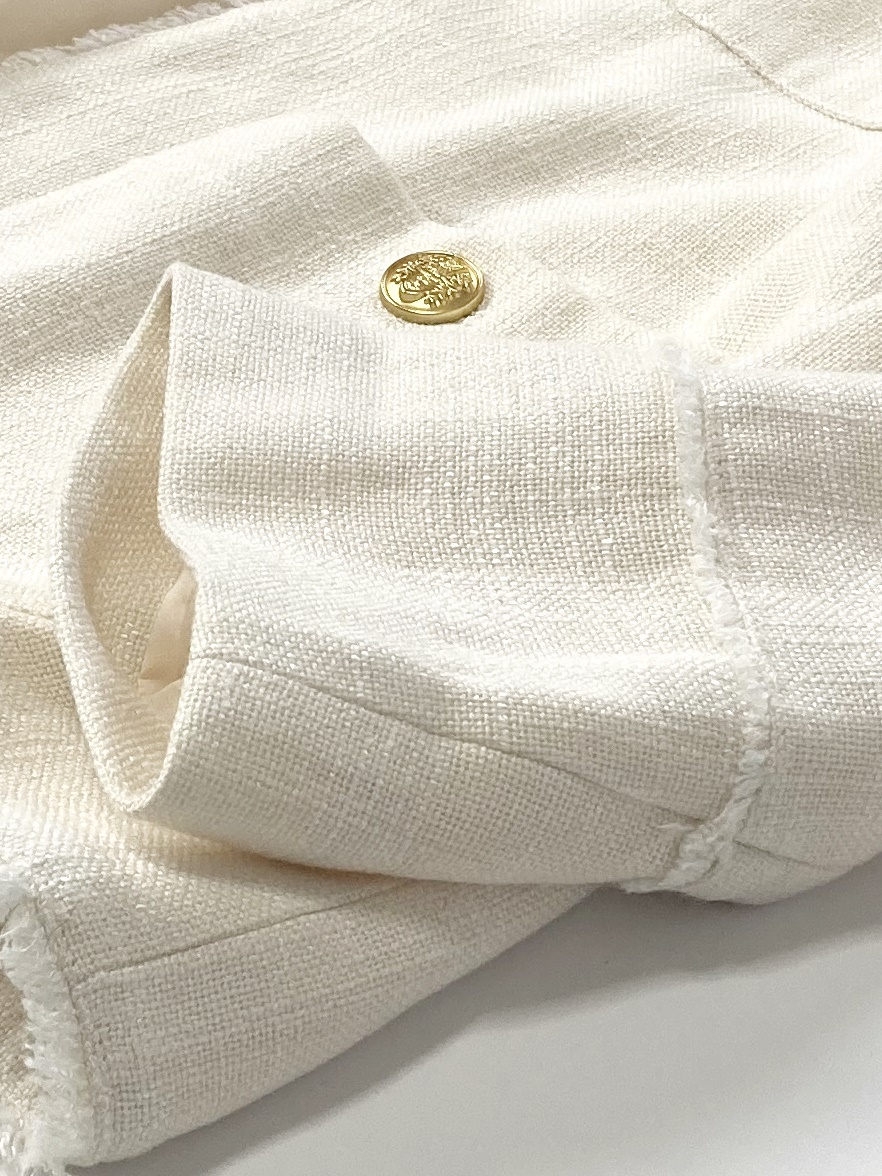 薄着になる時期に羽織るジャケットなので、肩回りや腕周りはコンパクトに、ヴィンテージボタンが映える一枚◎