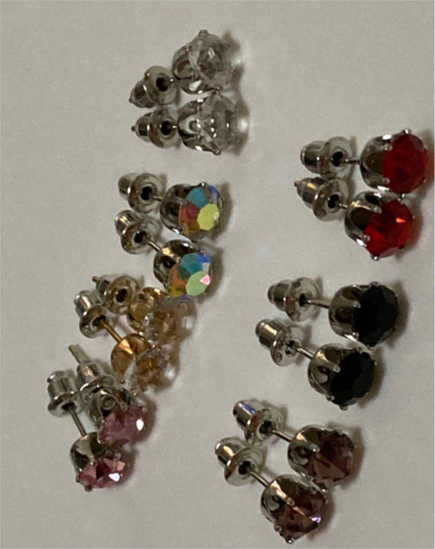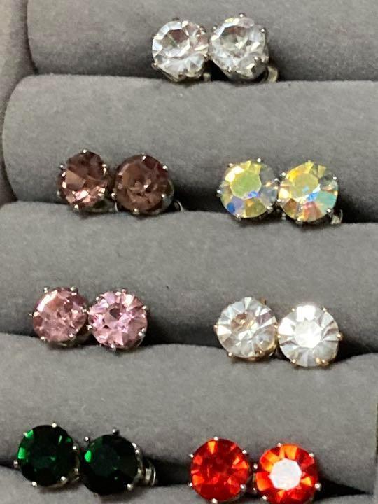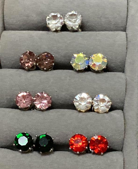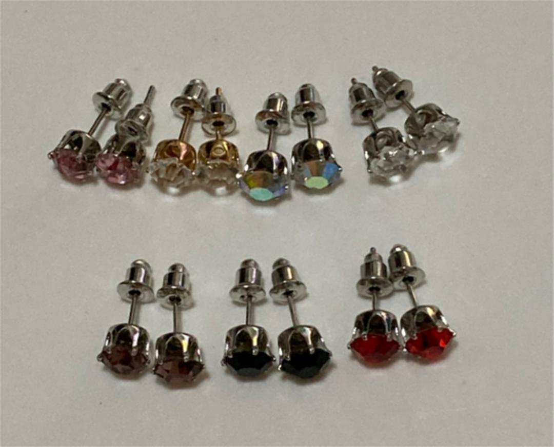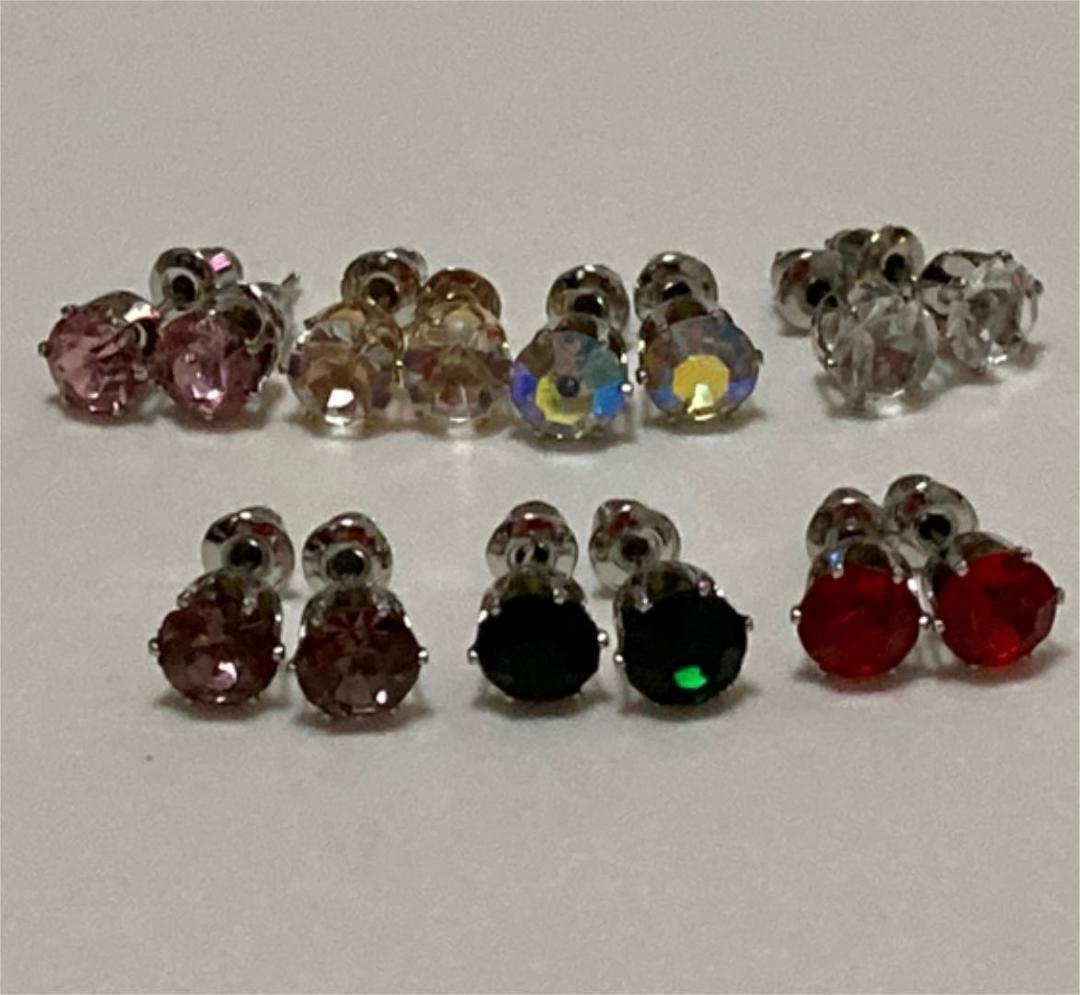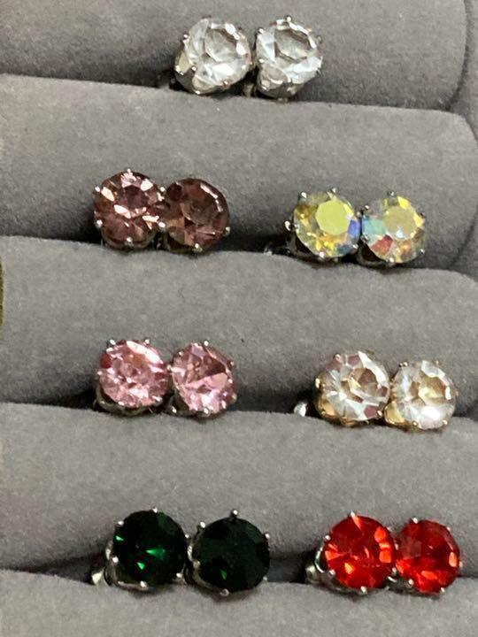 新品送料無料 キラキラのラインストーンのピアス7ペア セット スタッドピアス 赤 緑 ピンク スワロフスキー風