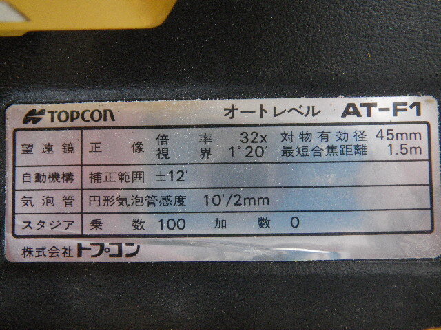 TOPCON トプコンオートレベル AT-F1 多少小傷等有りますが美品です。ピント・レンズのクモリ問題有りません。精度良好です。