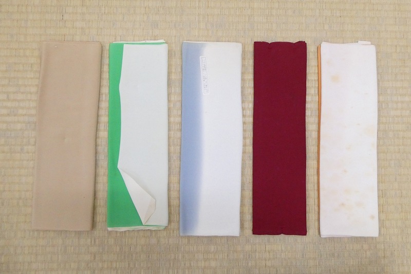 ◆八掛/5点/裏地/リメイク・材料等に/ボカシ柄・無地/新品・他/正絹/(梱包サイズ:60)◆* コメント・全体的にシミ・汚れ・色ヤケがあり、一部カビがあります。 ・新品のお品も含まれておりますが、経年保存されていたお品ですので、ご理解のある方のご入札をお願い致します。 ・シミ、ヤケ等の難がある為、リメイク・材料・素材用としてご入札ください。 ・ ・ * 品質・サイズ -- 着物サイズ目安 -- ・ ・ ・ ・※一部商品のみのお取引はお断り致しております。入札前・落札後に一部の商品のみのお取引交渉や発送方法(メール便等利用)の交渉はご遠慮下さい。サイズ・発送詳細を必ずご確認のうえ、ご理解・ご納得のうえでのご入札をお願い致します。 ・梱包サイズ:60サイズ(発送詳細必読) * 程度 当社基準ランク・・・【5~6】