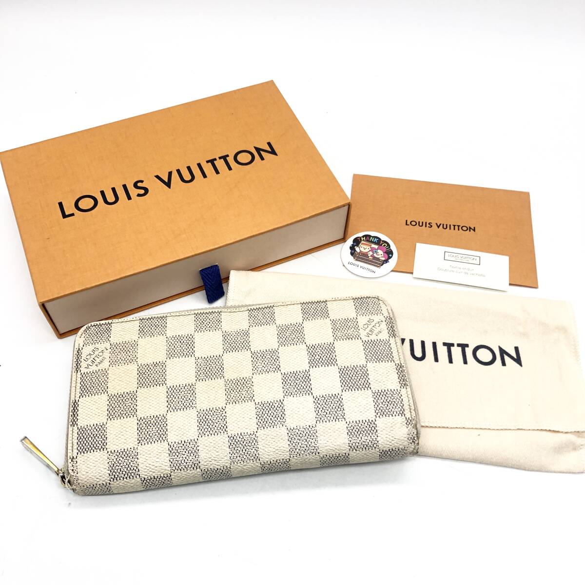 | 【保管品】LOUIS VUITTON ルイ ヴィトン ダミエ アズール ジッピーウォレット 長財布 ラウンドファスナー N60019 / ot-1714-sw ☆ブランド名☆ LOUIS VUITTON ルイ ヴィトン ☆商品名☆ ダミエ アズール ジッピーウォレット 長財布 ラウンドファスナー ☆対象☆ - ☆型番/製造番号☆ N60019/CA0171 ☆カラー☆ ホワイト系 ☆素材☆ ダミエ アズール ☆サイズ☆ 幅 約19㎝ 高さ 約10.5cm マチ 約2cm ☆仕様☆ ラウンドファスナー開閉式 ☆外側☆ - ☆内側☆ オープンポケット×4 ファスナー式小銭入れ×1 札入れ×2 カードポケット×8 ☆付属品☆ 保管箱 保管袋 ☆商品ランク☆ BCランク【画像参照】 ☆コメント☆ キズ汚れ等ございます。 チャックのかみ合わせが甘くなっています。 現品限りですので この機会をお見逃しなくお買い求めくださいませ。 型番等記載間違いがある場合がございますので、 画像にて判断をお願いいたします。 ☆重要☆ 中古品ですので、ご理解の無い方の入札はご遠慮くださいませ。 画像・詳細で分からない場合、必ずご質問くださいませ。 画像には映っていない物があるものとお考え下さいませ。 パソコンによって画質、色合いが異なる場合がございます。 又、入札後の取り消しは行っておりません 落札後24時間以内にご連絡がなかった場合 当店にてキャンセルとさせていただきます。 その際の評価に付きましては 落札者様に悪い評価がつく場合がございます。 入札された方は上記の内容に ご理解頂いた方と判断させていただきますので クレームは受け付けておりません。 あらかじめご理解の程宜しくお願いいたします | ||