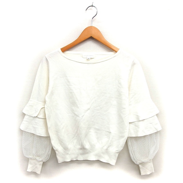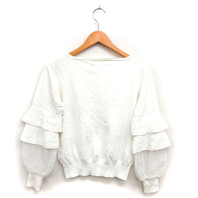 ジルスチュアート JILL STUART ティアードスリーブ ニット セーター クロップド チュール ボートネック リブ 長袖 F オフホワイト /NT2