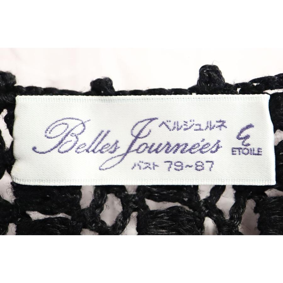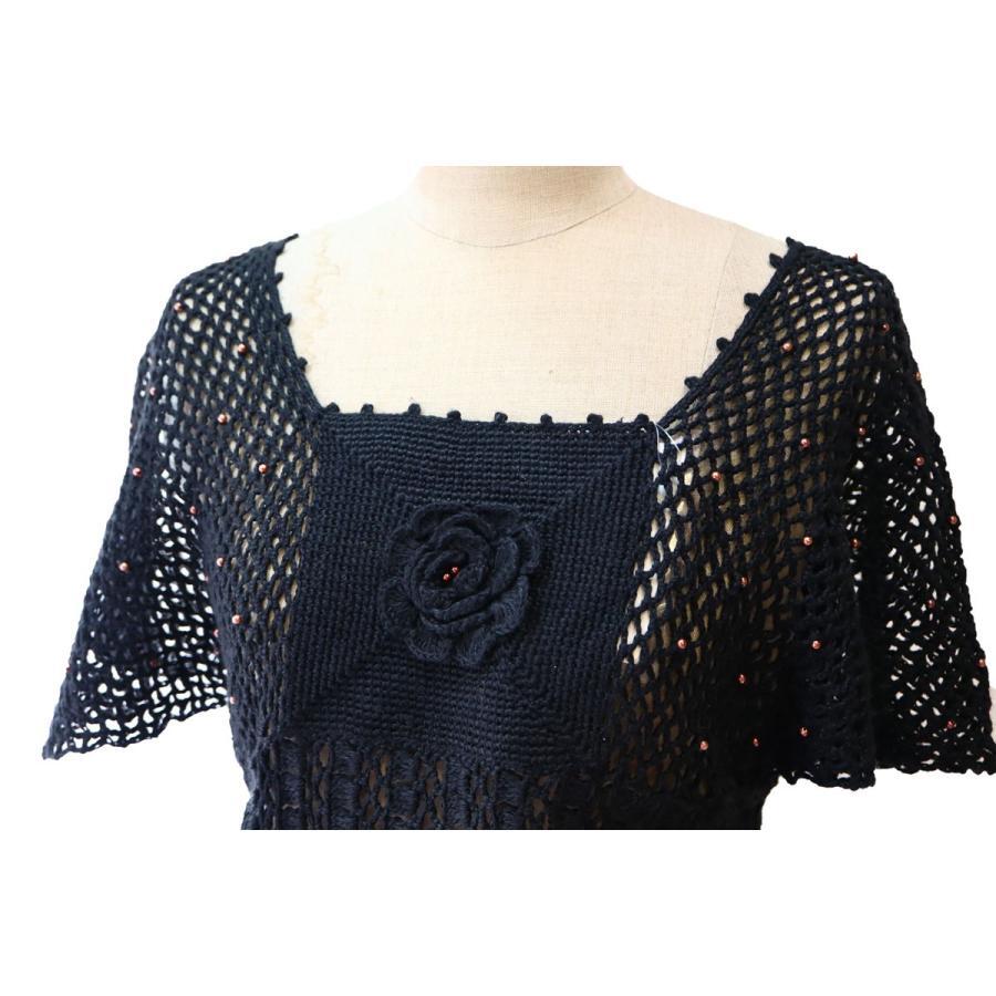 r1622 昭和レトロ フレンチ袖ニットソー 9号 黒 ブラック エトワール海渡 手編み 麻 春夏 レディース 60年代70年代