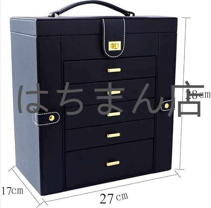 アクセサリーケースにはネックレスケースも含まれ、6 段(引出し 5 段)の収納空間があり、小分けの仕切りがあって種類に合わせて収納できます。