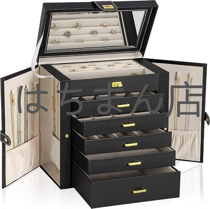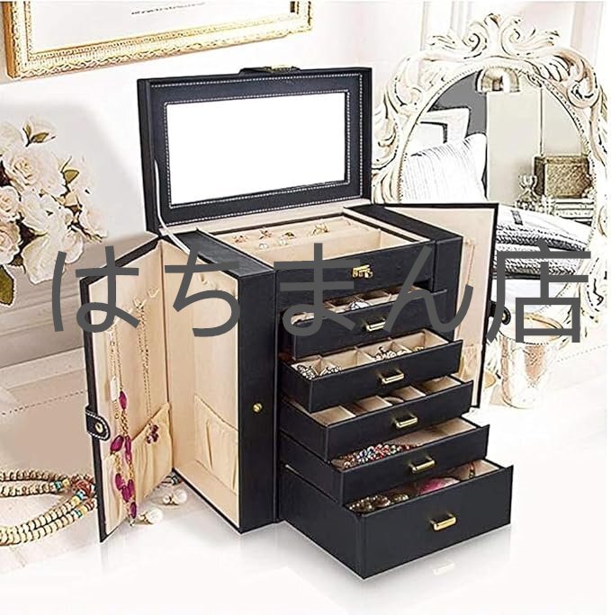 ジュエリーボックス 大容量 6段 鏡付き アクセサリーボックス ジュエリー収納 ジュエリーケース アクセサリーケース 黒です