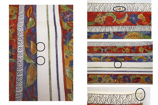 【表地】ABランク たれ先から40cmの所に2mm程の薄い点シミが2か所あります。手先から2mの所に3mm、1cmのシミがあります。また手先の端に5mm程のシミがあります。(最終画像参照) |