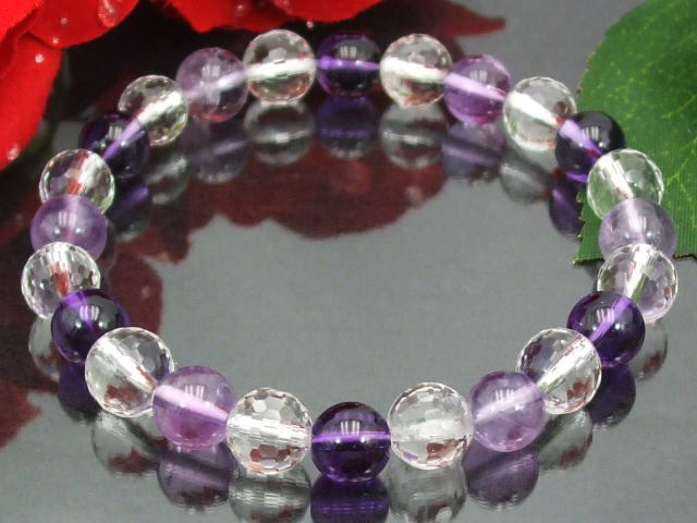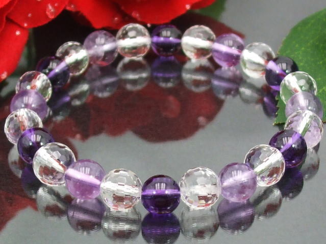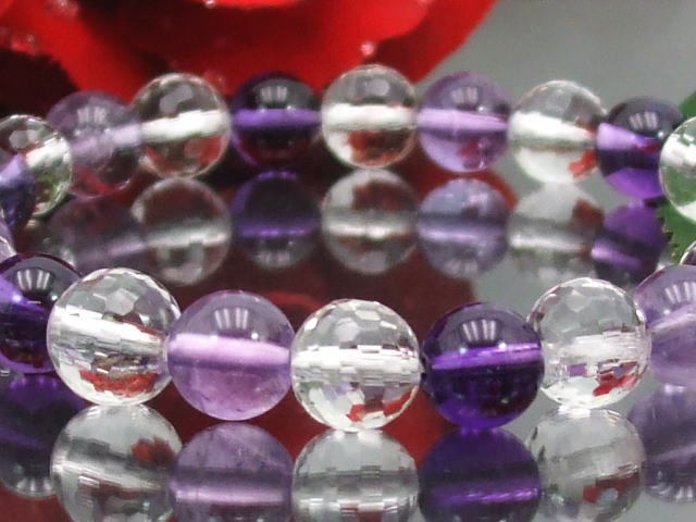 ロロロ 素材 ロロロ アメジスト8ミリ ピンクアメジスト8ミリ 水晶128面カット8ミリ カット水晶 サイズは約17.5cm(内径約16cm)♪