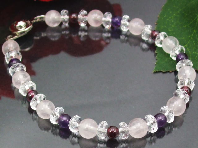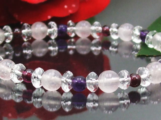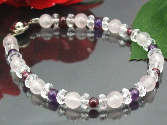★☆★ ローズクオーツ&アメジスト ガーネット ブレスレット 2月誕生石 真実の愛の象徴♪ 送料無料(a_r)b