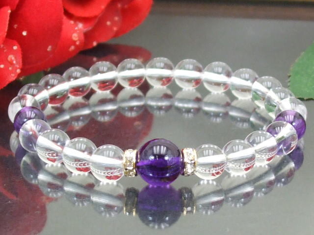 ★☆★ギフト応援 999yen アメジスト&水晶 ブレスレット 選べる3サイズ 2月誕生石 真実の愛 送料無料(a_r)b