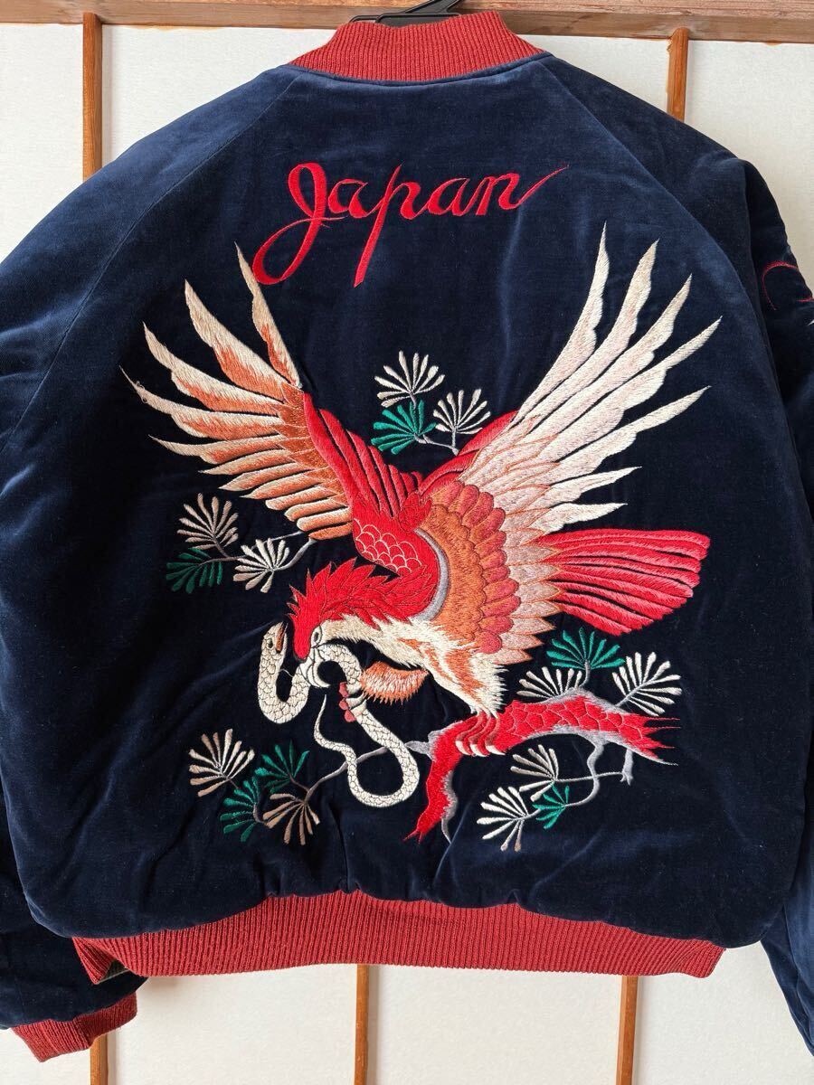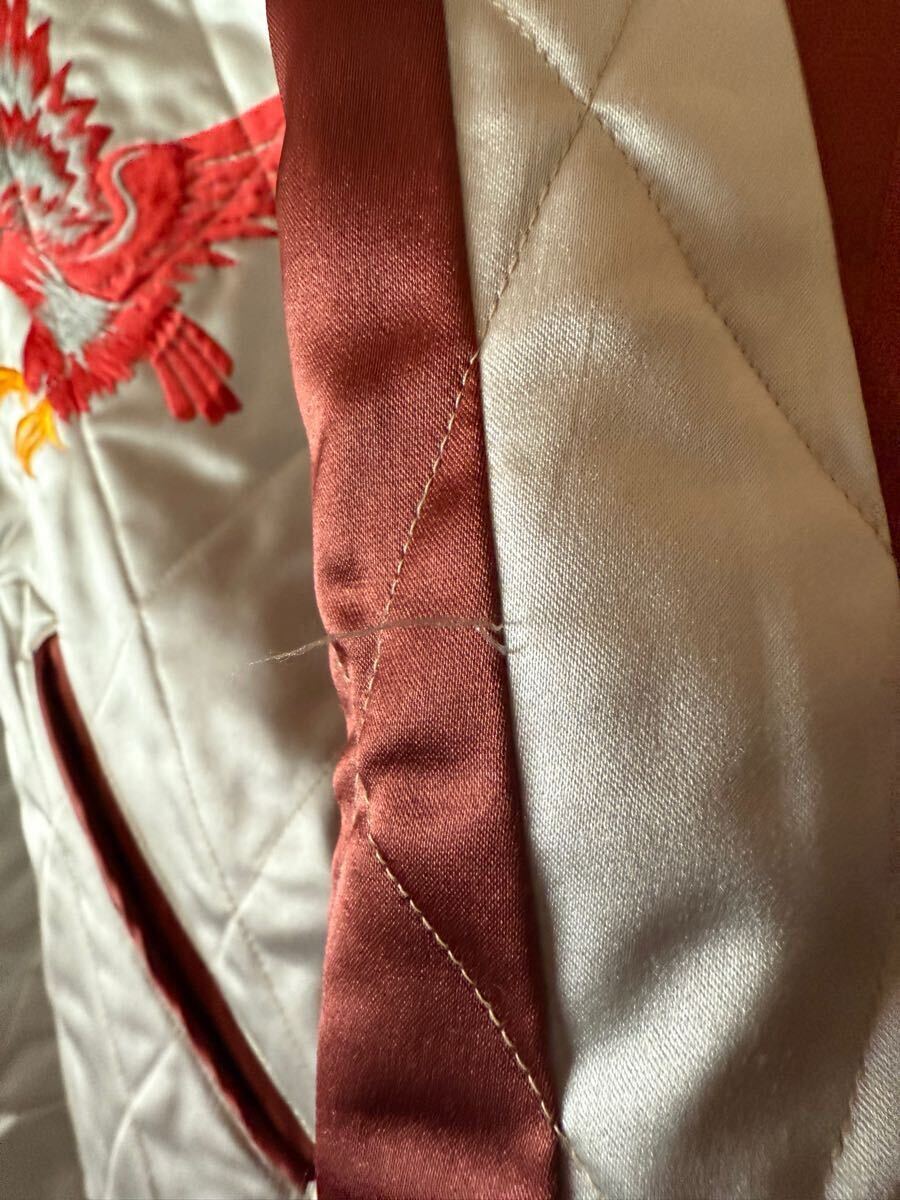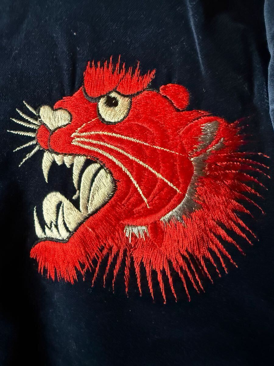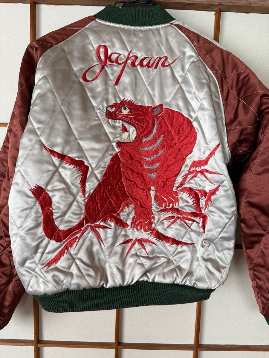 赤虎で袖が茶色 リブが単色と赤虎の中でも一番カッコいいスカジャンです 反対面も鷹、鷲?とヘビですが色合いが同じ柄でも一番だと思います