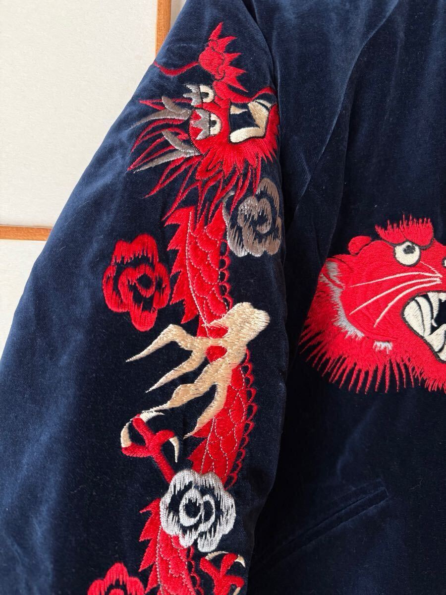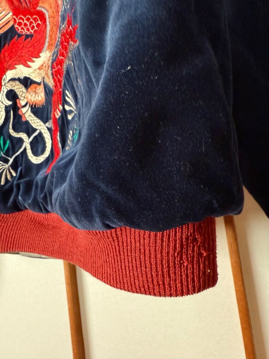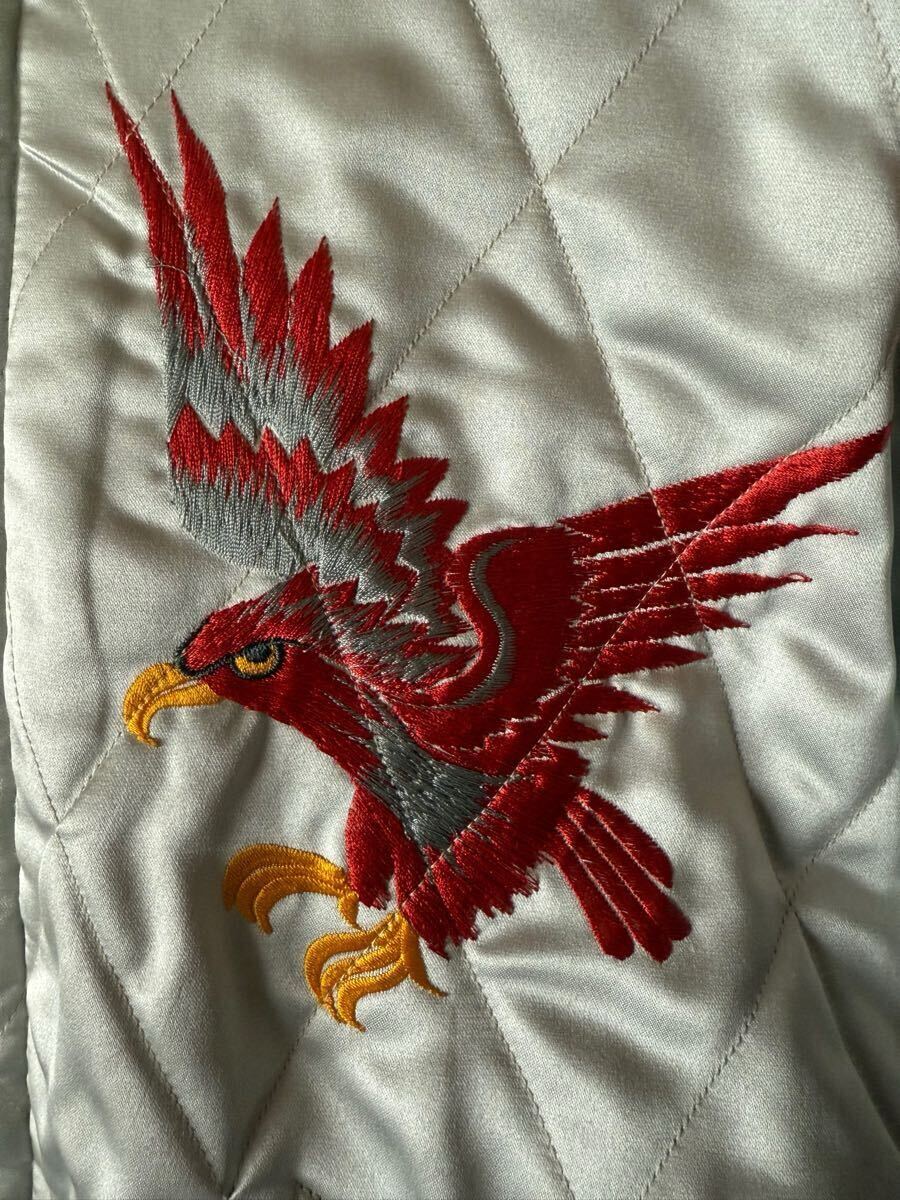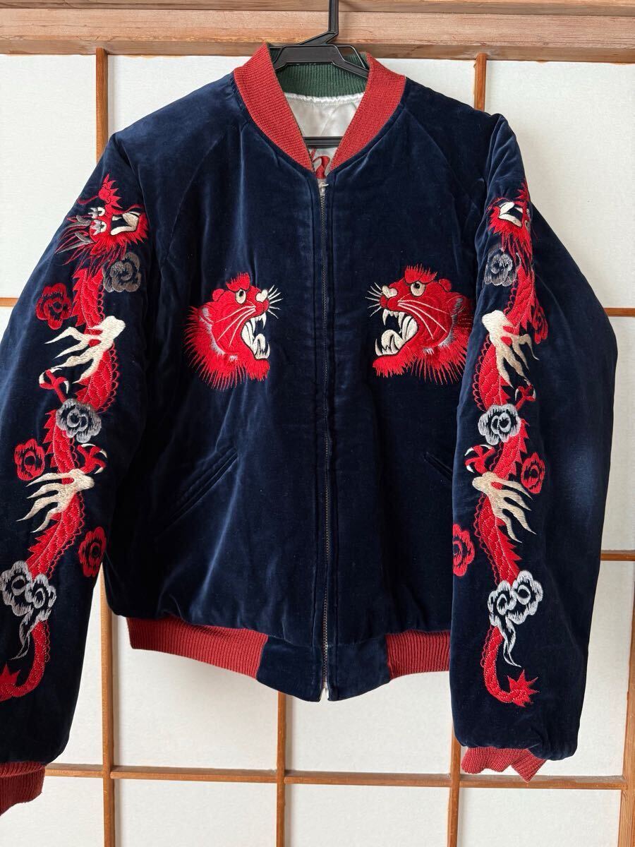 赤虎で袖が茶色 リブが単色と赤虎の中でも一番カッコいいスカジャンです 反対面も鷹、鷲?とヘビですが色合いが同じ柄でも一番だと思います