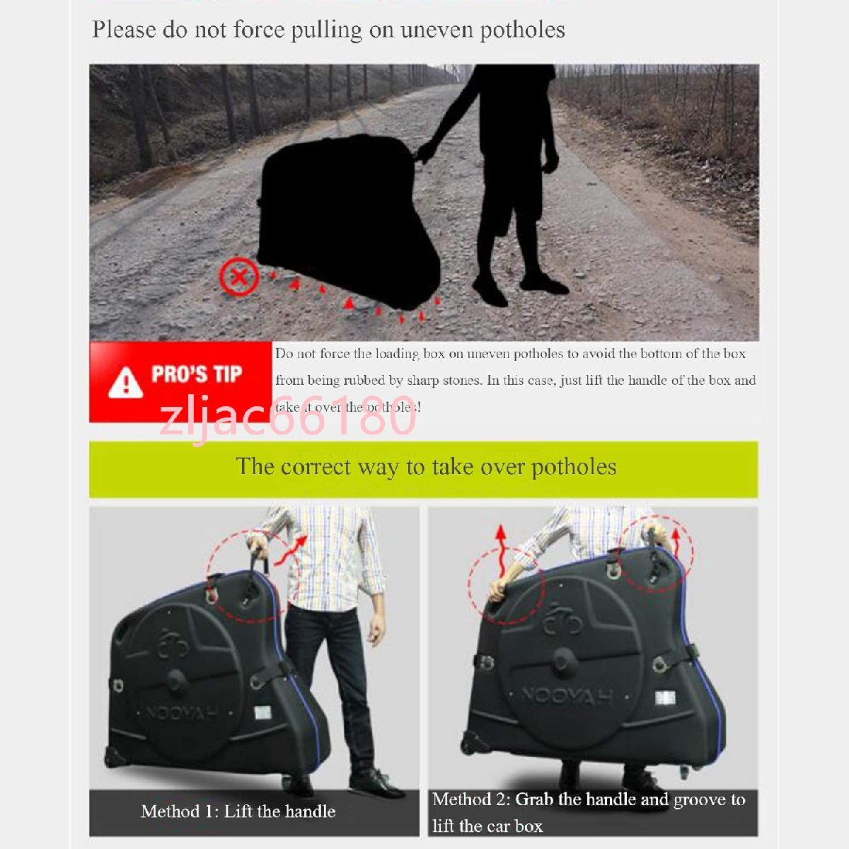 自転車用ボックスは、2つのユニバーサルホイールと2つの方向性ホイールの組み合わせを採用しており、柔軟に回転できます。プルタイプのハンドルにより、ボックスの動きがより柔軟になり、ボックスを階段の上下に持ち上げることもできます。 。
