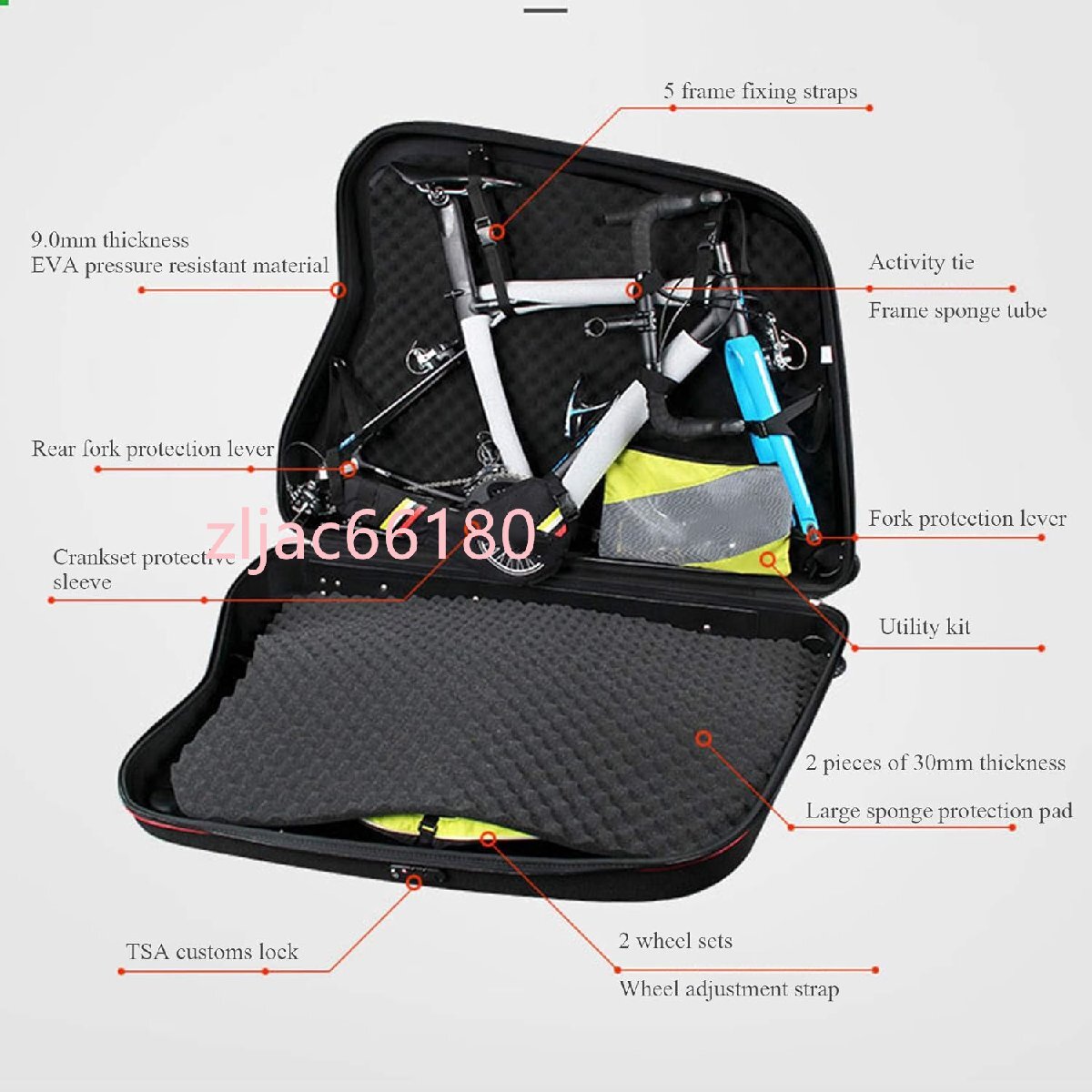 自転車の箱は、200°の高温環境下でプレスされた1200POLYの耐引裂性ファブリックと複合された9mm厚のEVAモジュールで作られています