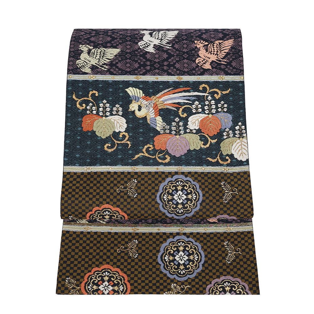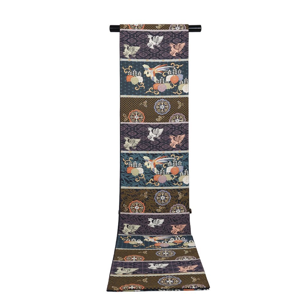 | 西陣織袋帯 唐織 名物裂 紫・緑・金・茶・黒地 唐織・鳳凰・花喰鳥・桐・唐花・華文 仕立て上がり |