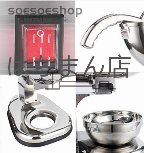 【デザイン】:巧緻なハンドル、氷の出口と地面の間の距離は18cmです。かき氷を出るのは速く、かき氷を取るのはもっと便利です。かき氷メーカーの後側には排気口があり、放熱が速くて安定した作業することができます。