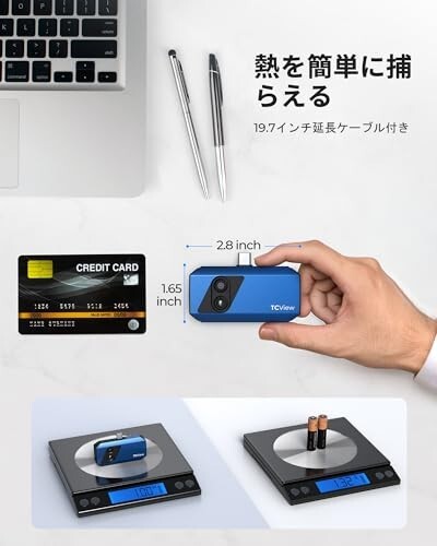 • コンパクト、耐久性、多用途寸法わずか14x10x5cm、重量わずか 0.22kgのサーモグラフィーカメラは、最大 1 メートルの落下に耐えるように設計されています。