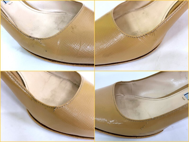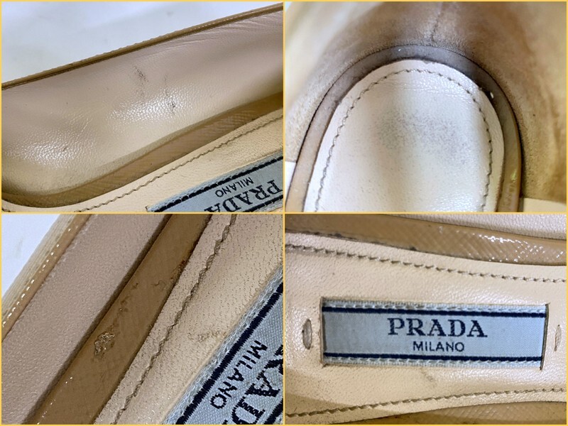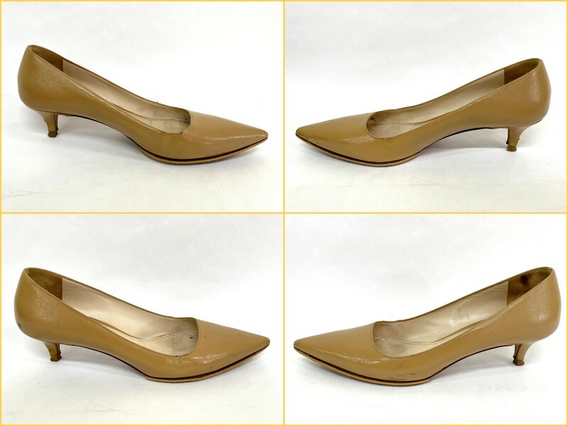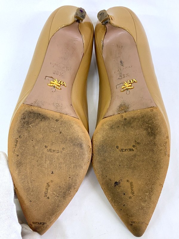 【即決】 PRADA プラダ サフィアーノ レザー キトゥンヒール パンプス ポインテッドトゥ レディース ベージュ 36・1/2 約23.5cm 靴