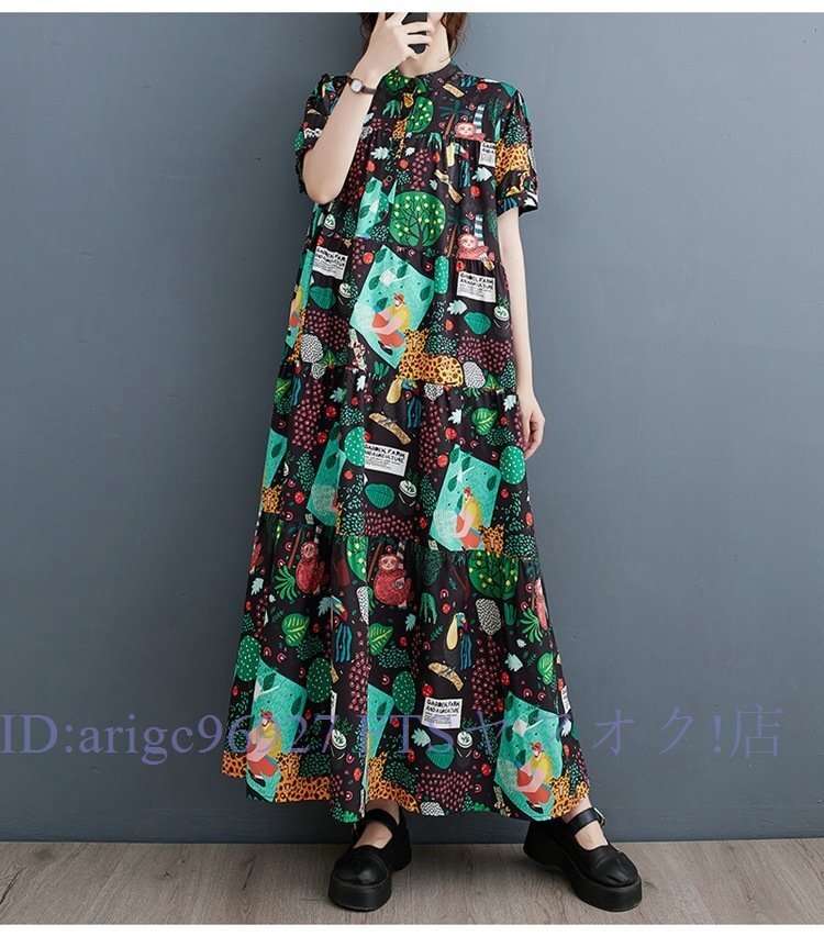 ★新品総柄&ティアードがおしゃれなマキシ丈ワンピ 大きいサイズ ギャザーでゆったりとろみ素材マキシ丈ワンピお色選択可