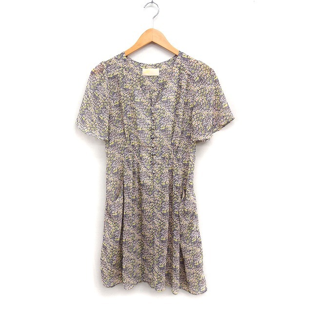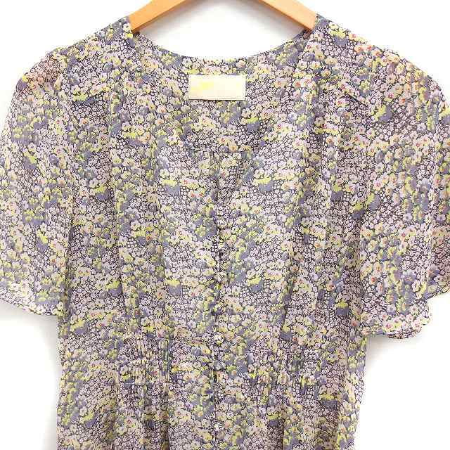 レイビームス Ray Beams 花柄 シアー フレア チュニック 半袖 グレー 灰 /FT46 レディース