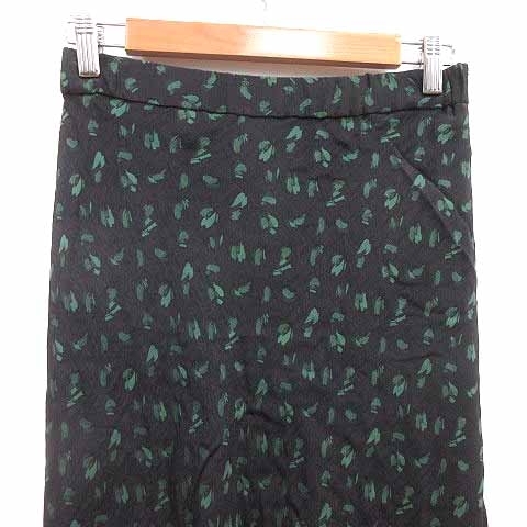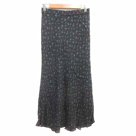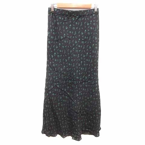 シップス SHIPS フレアスカート ロング マキシ 総柄 38 M 黒 ブラック 緑 グリーン /YK レディース