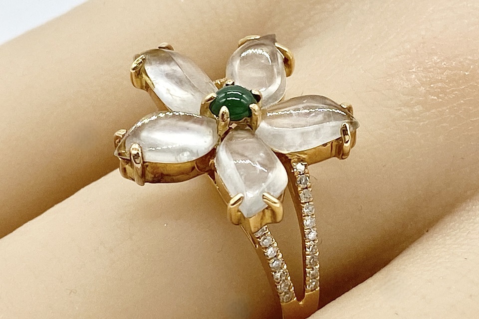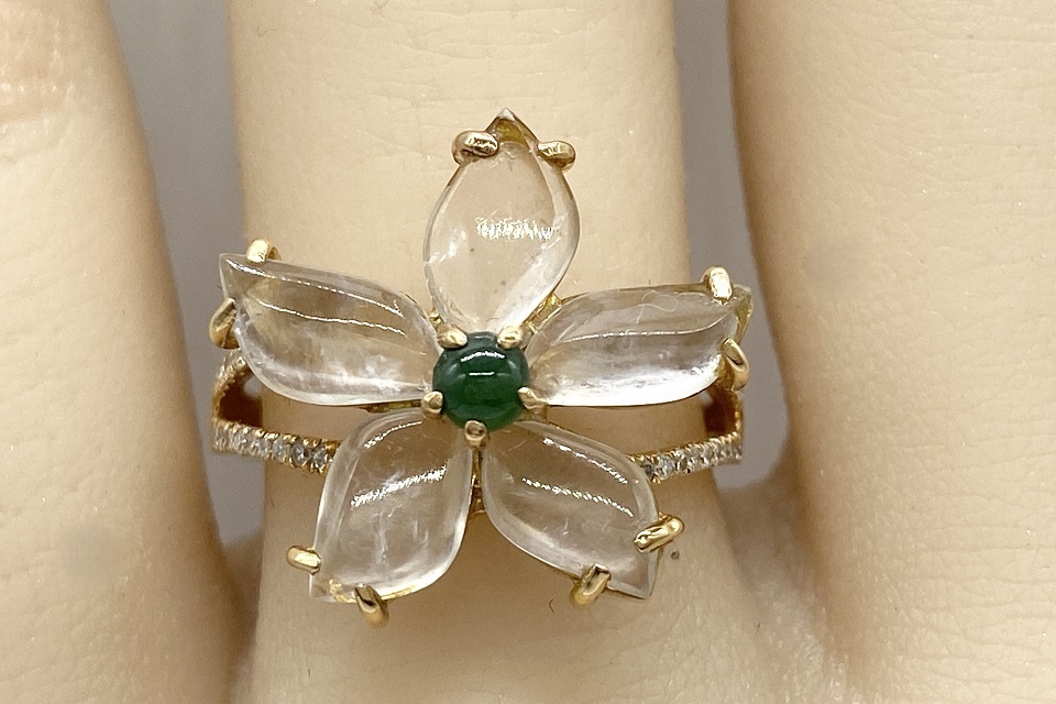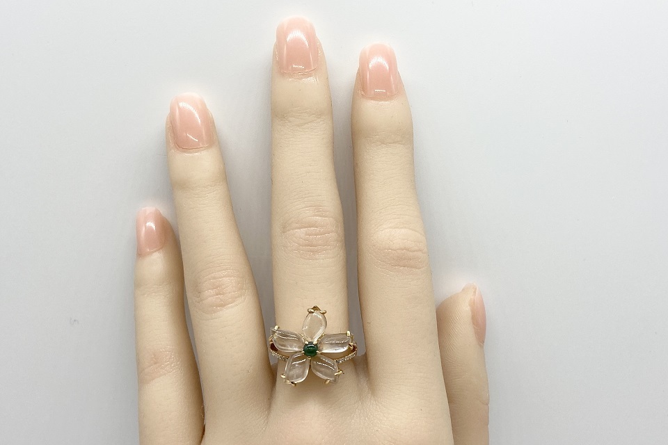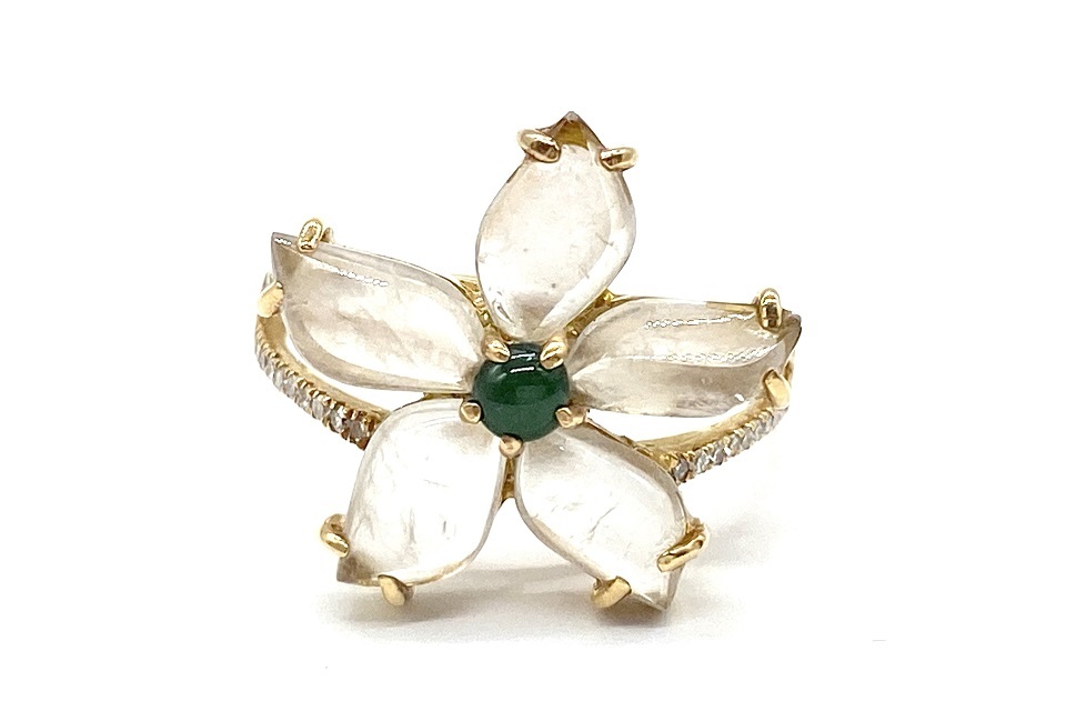 品名 | 【Jadeite】 K18翡翠(白・緑) ダイヤモンドリング |