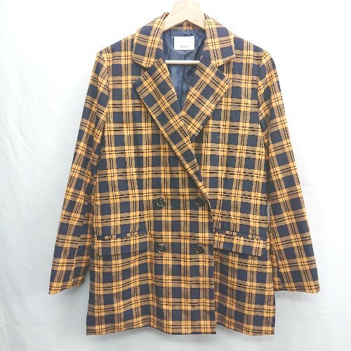 ◇ ⊇ EGOIST エゴイスト チェック柄 長袖 ジャケット サイズF オレンジ系 レディース E