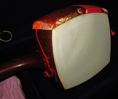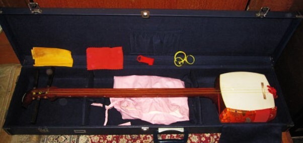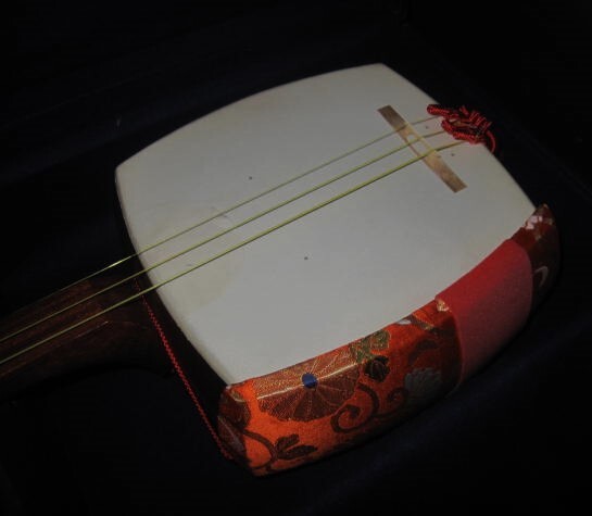 [中古]三味線 中棹 地唄 破れなし ハードケース(青)、胴袋、駒付き、他付属品あり