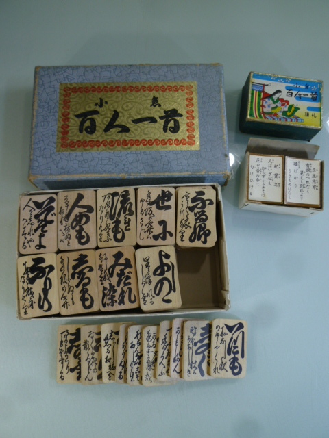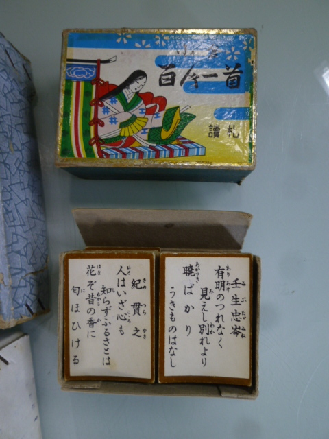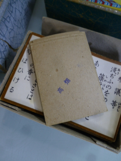 ◆取り札、読み札に名前印あり、箱に破けや底面に記入があります。