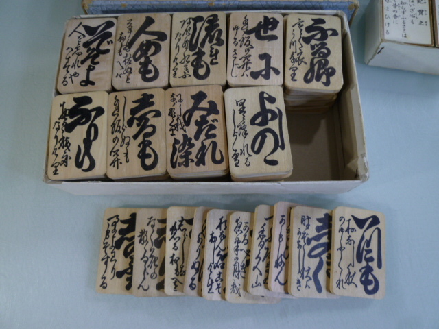 北海道版 木製取り札 百人一首 読み札取札100枚あり 名前印有り 中古