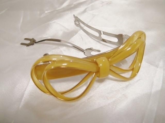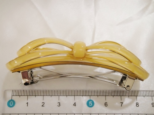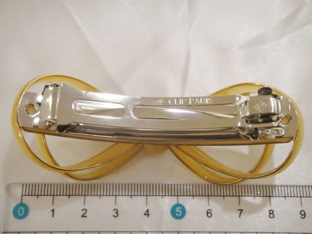 バレッタ本体、クリップ等にメッキ加工が施されておりますが経年劣化による色の変色が生じる場合がございます。