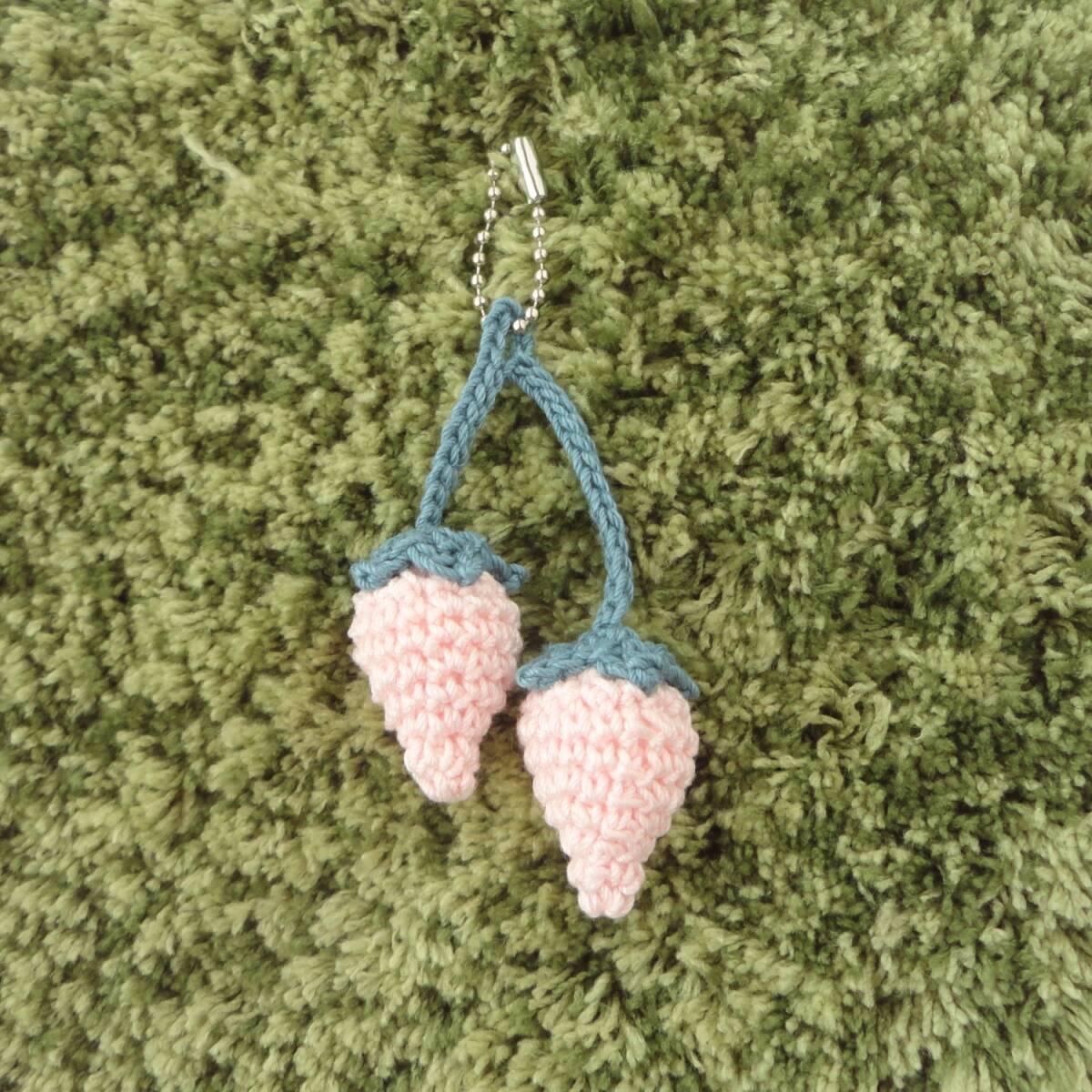いちごのキーホルダー*バッグチャーム*PK*レース編み*ストロベリー*ハンドメイド*b764
