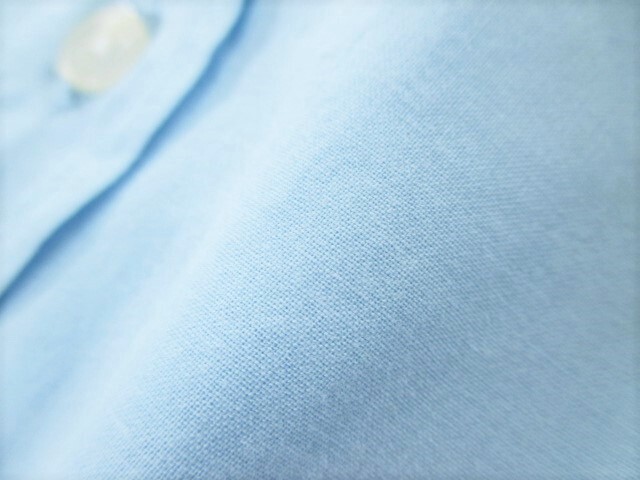 製品染めによる少し褪せさせたような水色の色合いも良く、派手さも抑えられていますので、明るすぎるカラーシャツが苦手な方や大人の方に楽しんで頂くカラーシャツとしてもおすすめです。