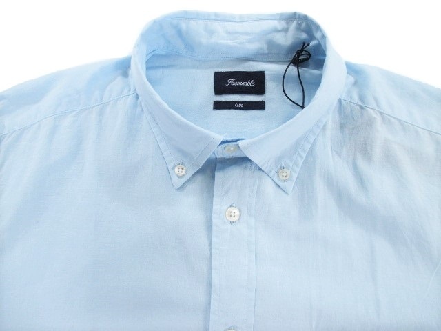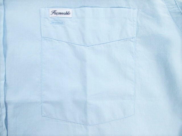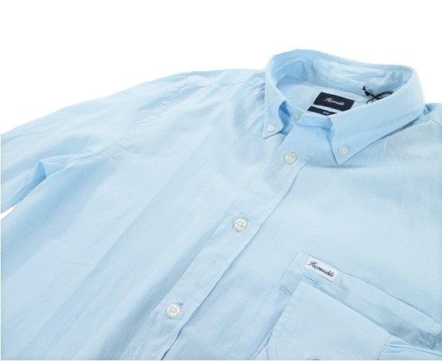 1950年創業、小さな仕立て屋から始まりヨーロッパの有名百貨店で取り扱われるまでに成長した歴史あるフランスブランド「Faconnable(ファソナブル)」の長袖 製品染め 胸ポケット 水色ボタンダウンシャツです(モロッコ製)
