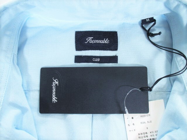 【冬SALE】新品★Faconnable 長袖 製品染め 胸ポケット 水色ボタンダウンシャツ Mサイズ★定価18480円 サックス ファソナブル メンズ