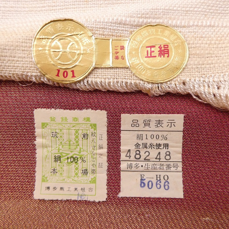 ◆名古屋帯/2点/西陣織・本場筑前博多織/花柄/リメイク・材料等に/新品/未仕立て/正絹/(梱包サイズ:80)◆* コメント・全体的に薄汚れ・薄い色ヤケがあります。 ・新品ですが、経年保存されていたお品ですので、ご理解のある方のご入札をお願い致します。 ・シミ、ヤケ等の難がある為、リメイク・材料・素材用としてのご利用をお薦めします。 ・ ・ * 品質・サイズ -- 着物サイズ目安 -- ・証紙番号:101 ・ ・ ・※一部商品のみのお取引はお断り致しております。入札前・落札後に一部の商品のみのお取引交渉や発送方法(メール便等利用)の交渉はご遠慮下さい。サイズ・発送詳細を必ずご確認のうえ、ご理解・ご納得のうえでのご入札をお願い致します。 ・梱包サイズ:80サイズ(発送詳細必読) * 程度 当社基準ランク・・・【4~5】
