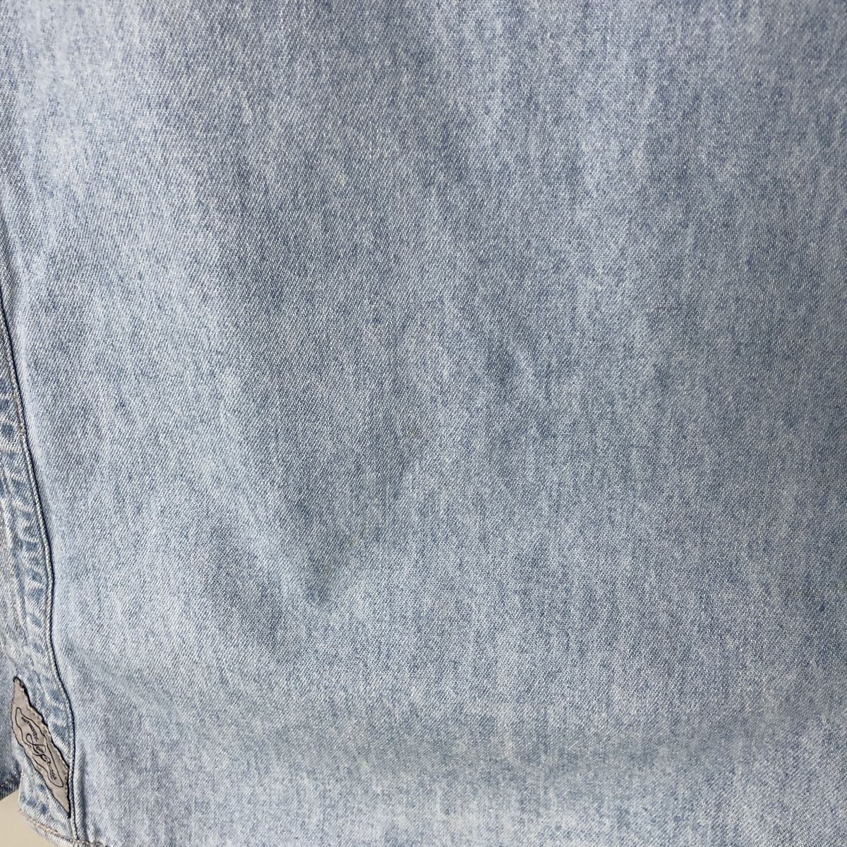 | 表記サイズ: L 着丈: 82.5cm 身幅: 63cm 肩幅: 55.5cm 袖丈: 60cm ![]() | ![]() ランク:C USEDデニムですので使用感、擦れ、色落ちなどございますが、まだまだご愛用していただけます。 古着という事をご理解の上ご注文よろしくお願いします。 【状態追記】 ●前、左腹部汚れ ●後、中央裾先糸ひき |