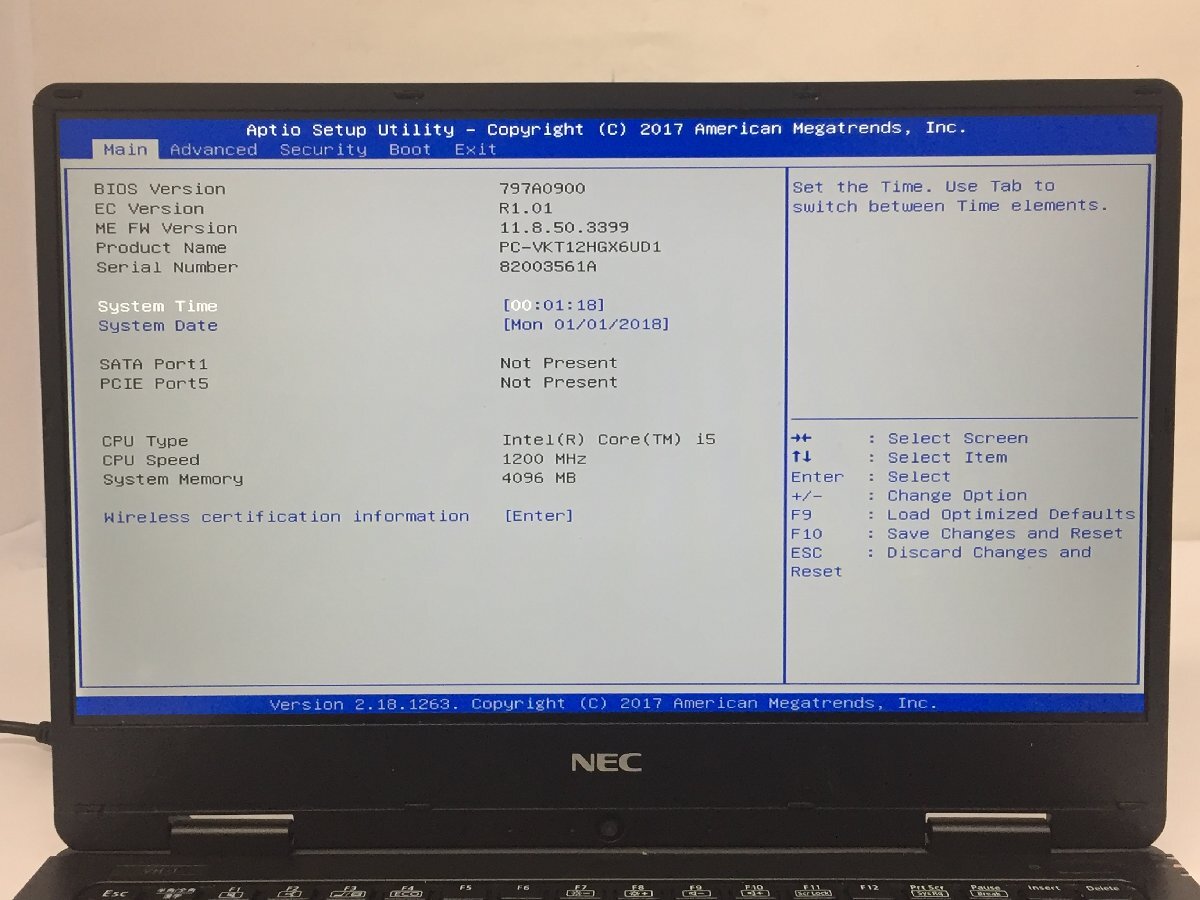 ジャンク/ NEC PC-VKT12HGX6UD1 Intel Core i5-7Y54 メモリ4.1GB ストレージ無し 【K09723】