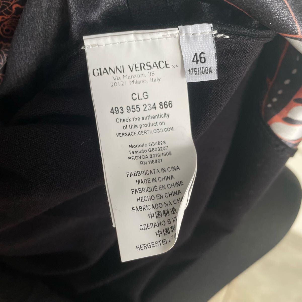 シンメトリーに描かれた柄は、オレンジ・パープル・ピンクを使った鮮やかなカラーでヴェルサーチらしいデザインです。