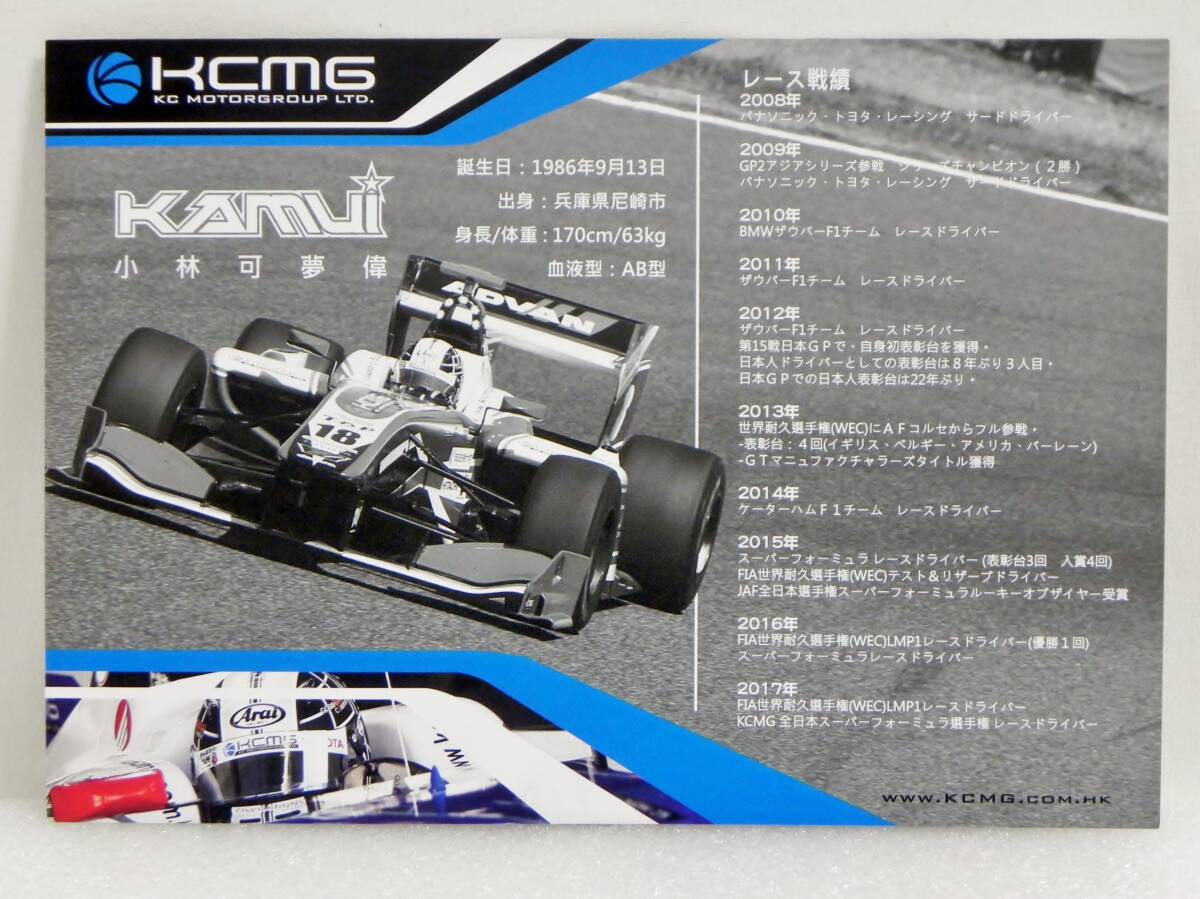2017 スーパーフォーミュラ #18 小林可夢偉 ドライバ ーズカード Rd.4 ツインリンクもてぎ KCMG