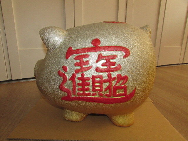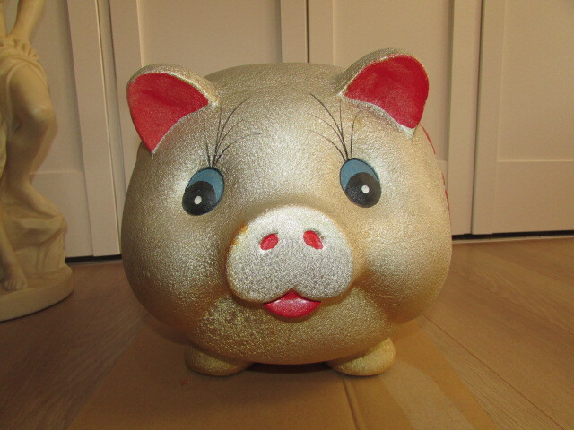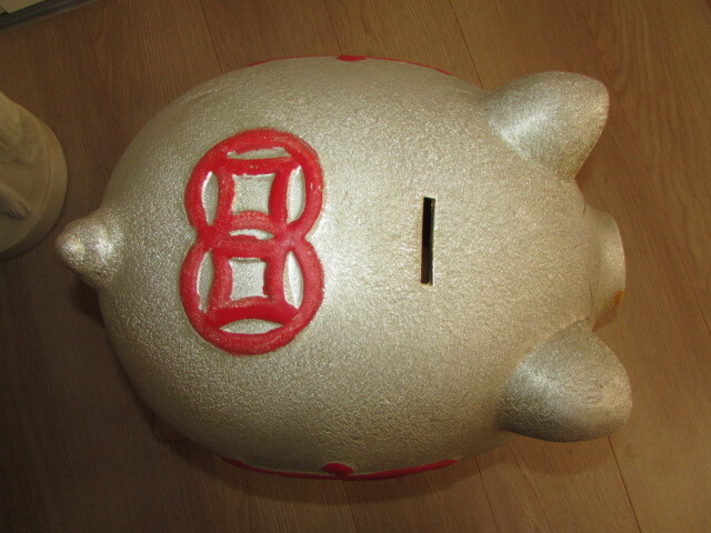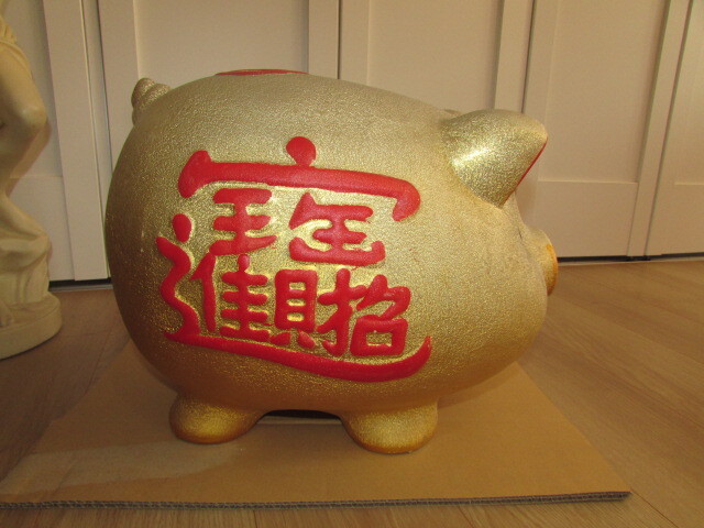 古い陶器の大きな大きな陶器製豚の貯金箱です。