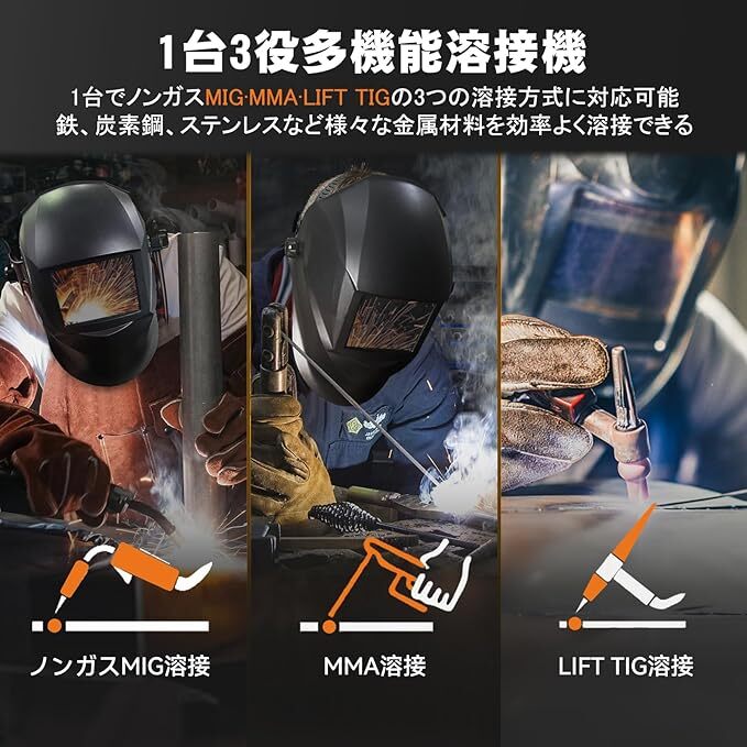 3in1多機能溶接機:無ガスMIG、被覆アークMMA、およびLIFT TIGの3種類の溶接方式を1台に結合しました。