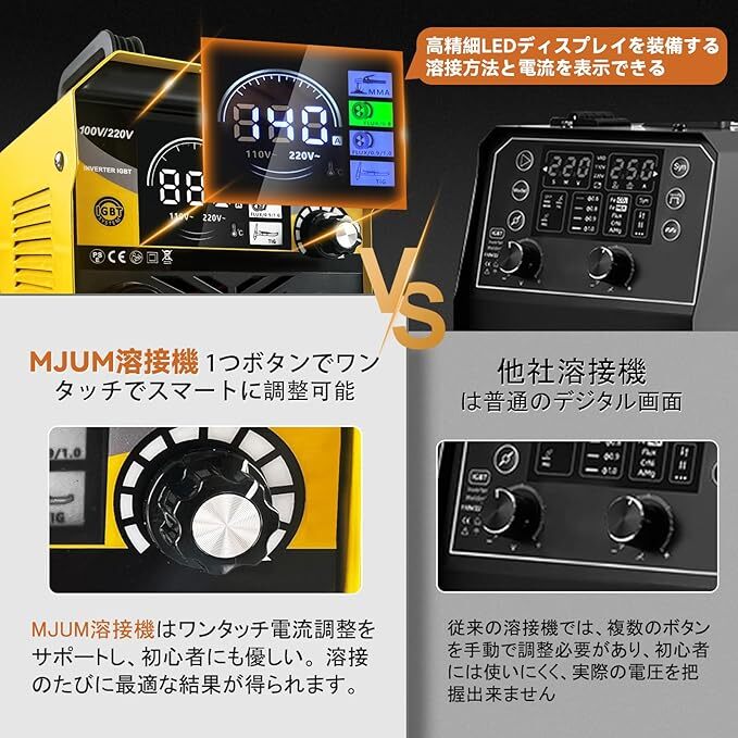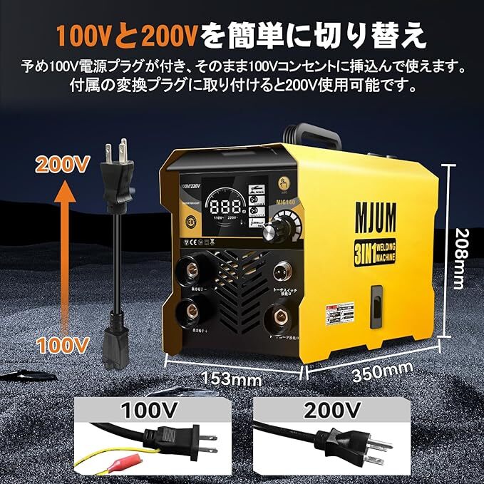 半自動溶接機 最大出力140A 100V/200V兼用 1台3役電気溶接機 LED液晶表示 ノンガスMIG/被覆アークMMA/LIFT TIG対応 電流電圧自動調整