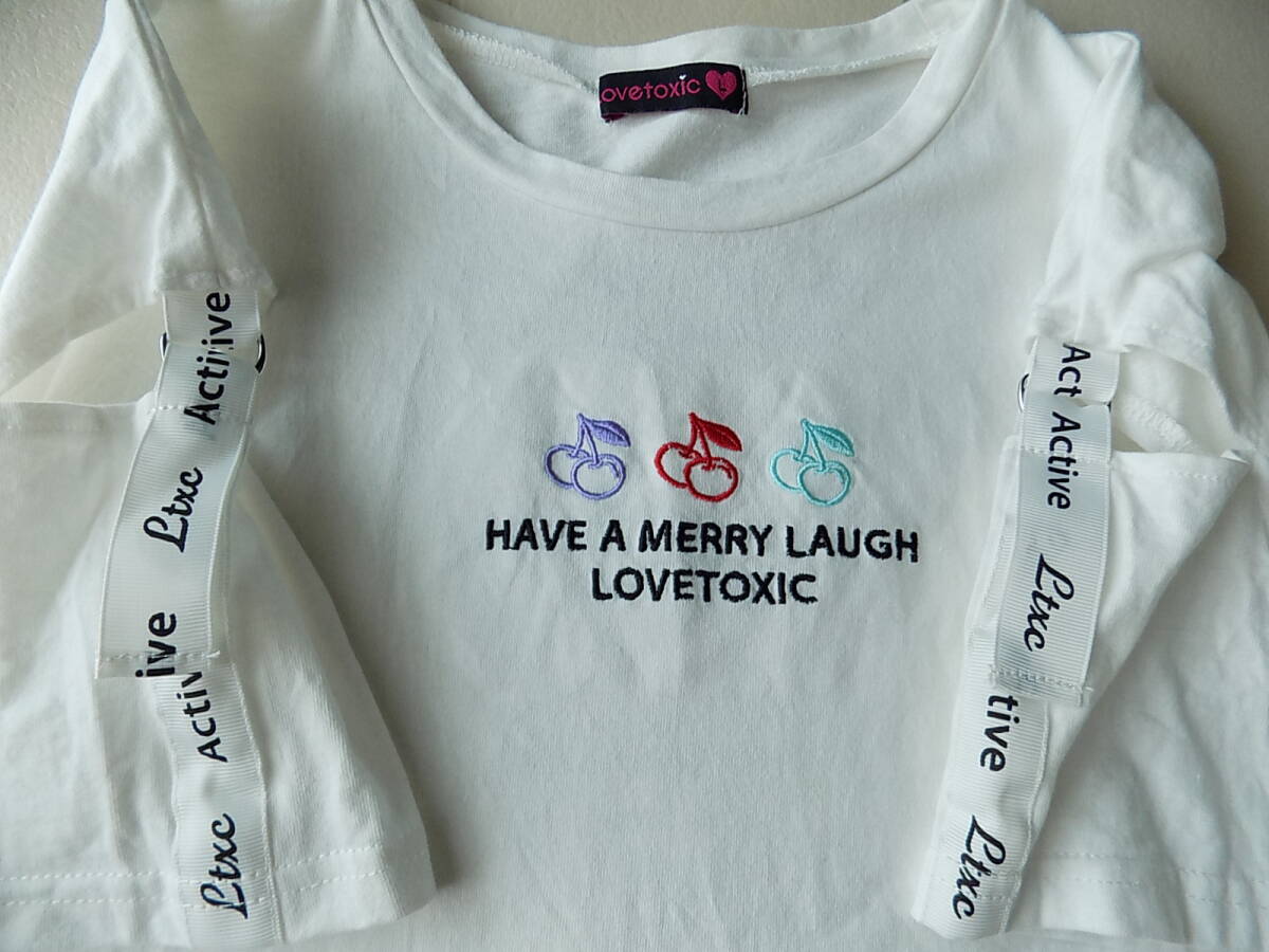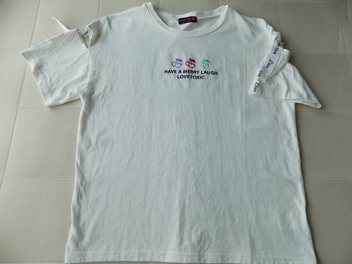 Lovetoxic☆ラブトキシック☆裏プリント&さくらんぼ刺繍の可愛いカットソー♪Lサイズ160 ラブトキシックの可愛いカットソーです。 数回着用の中古品となります。 見た所、特に難はないようです。 洗濯後の皺がありますので予めご了承下さいませ。 お気に召して頂いた方にお下がり感覚で使って頂けたらと思います。 中古品となりますので、それでも構わないと思われる方のみご入札をお願いします。m(_ _*)m | ||