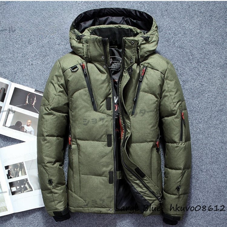 大人気 ダウンジャケット メンズ 防寒 スキーウェア ダウンコート アウトドア ショートコート ジャンパー ブルゾン オリーブ 3XL