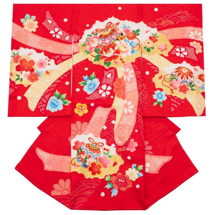 女の子用のお宮参りの着物です。 着物と長襦袢がセットになっています。 |