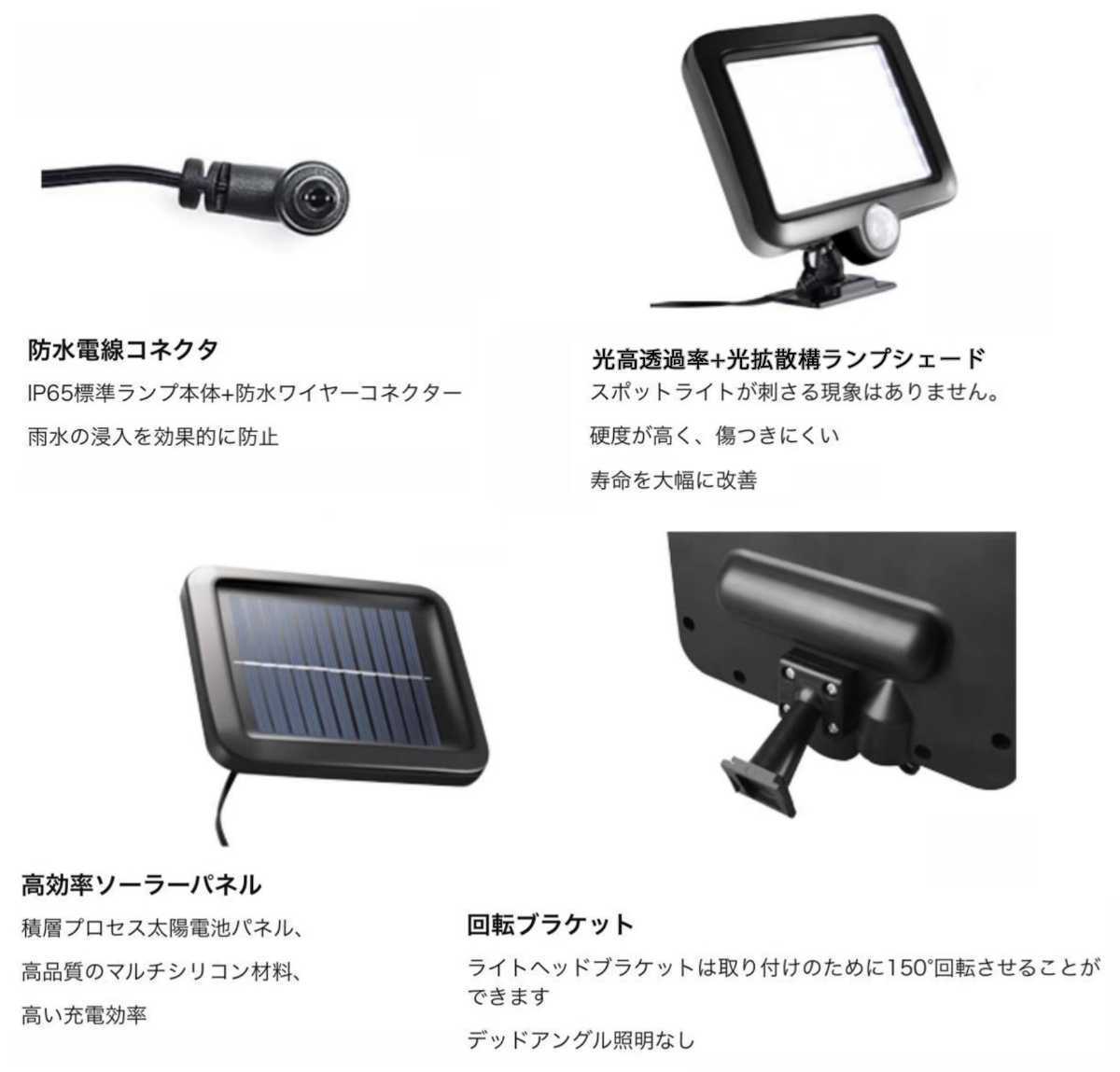 ソーラーライトは高輝度のLEDライトが搭載され、他の類似LEDライトよりももっと明るくなり、優れた照明を提供できます。