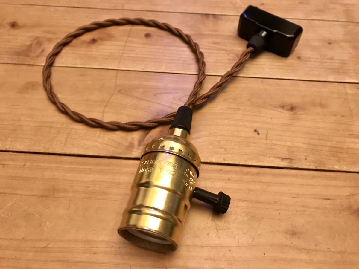 ★彡 アンティーク/レトロ ペンダントライト ソケット E26 真鍮 吊り下げ シーリングプラグ/ダクトレール 長さ調整無料!