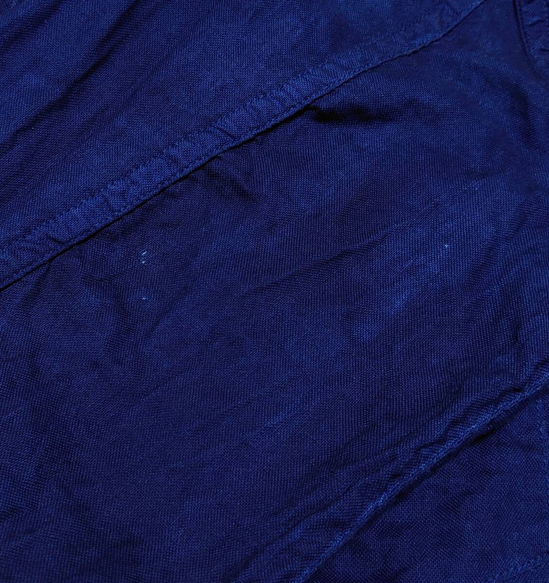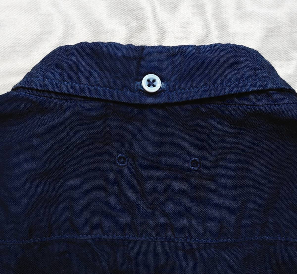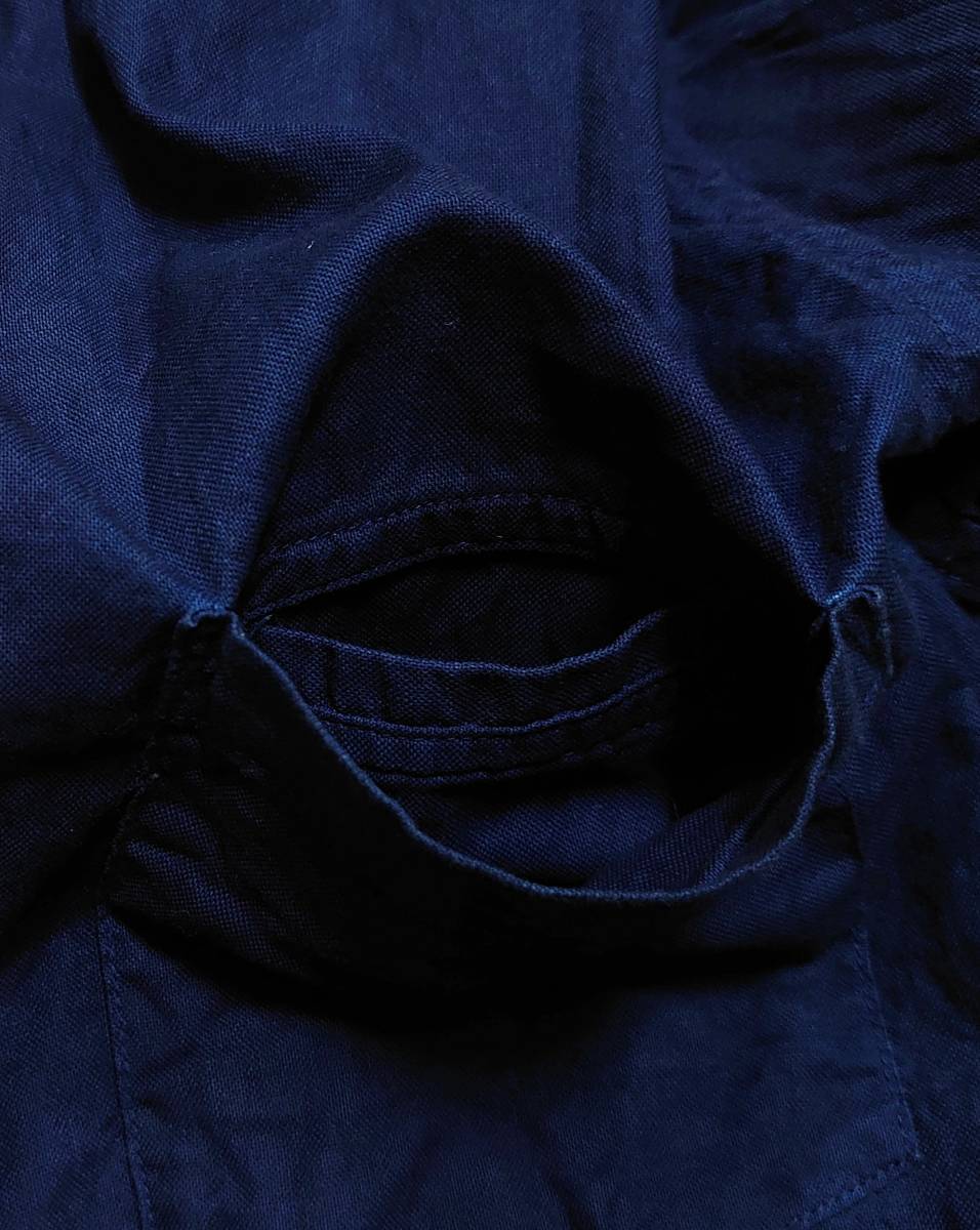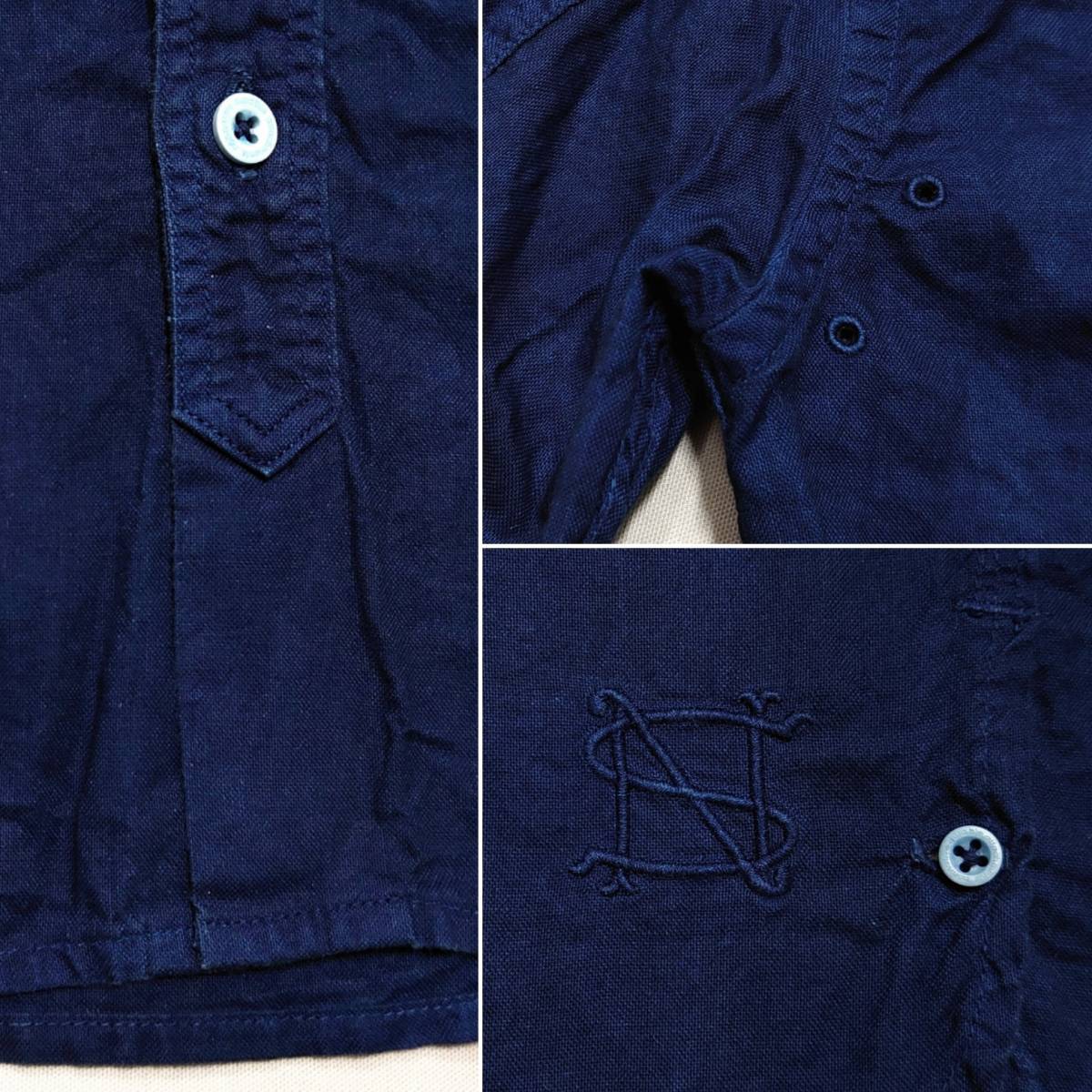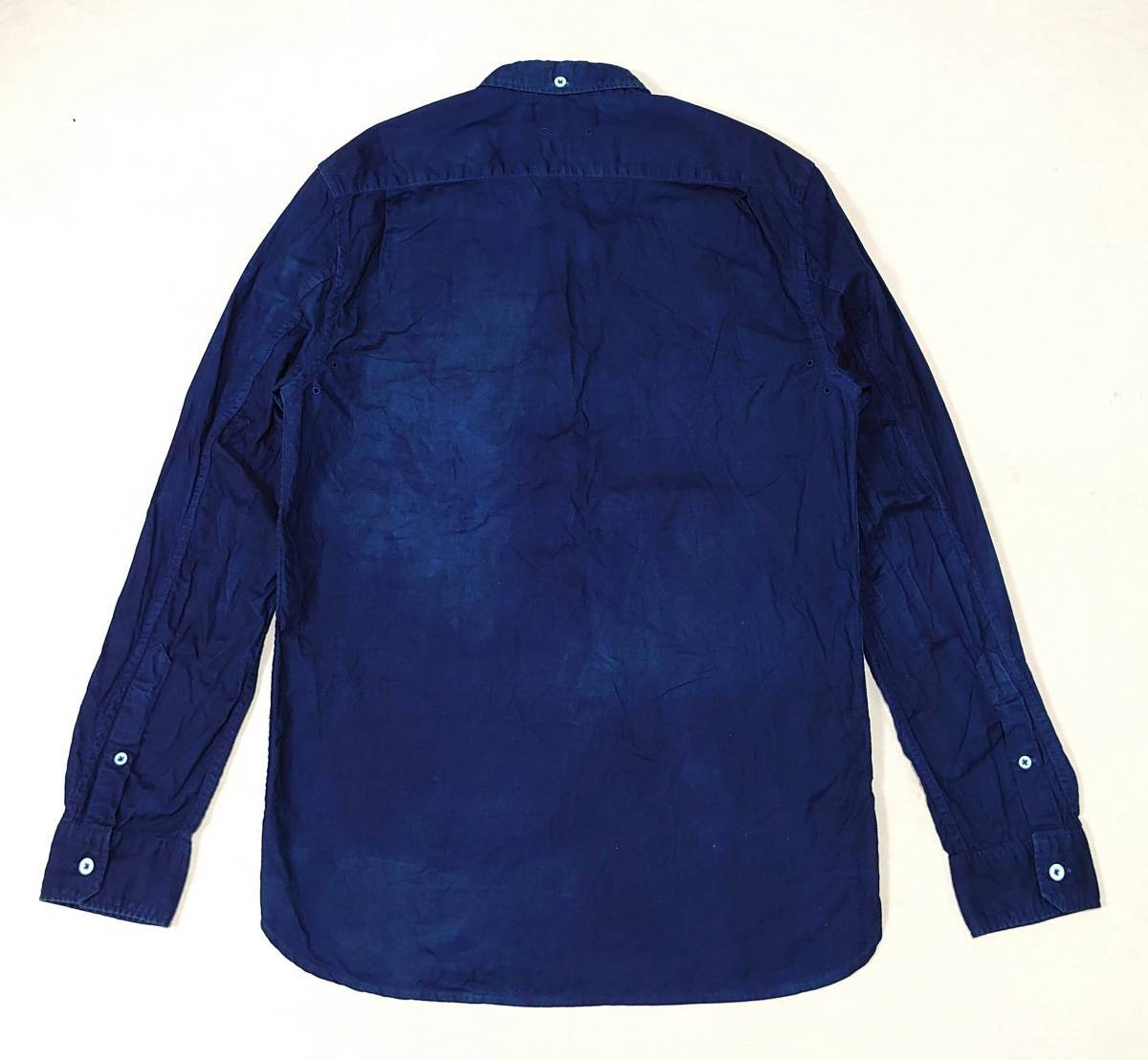 国指定文化財に認定されている琉球藍を使用し、吉川慶一氏が染め上げたオリジナルのボタンダウンシャツ。オーバーダイ加工を施したオックスフォード素材に琉球藍の深みのあるブルーが良く映える1枚です。小ぶりな襟や、やや長めにとられた着丈、独特のシワ感など、ノンネイティブならではの特長です。