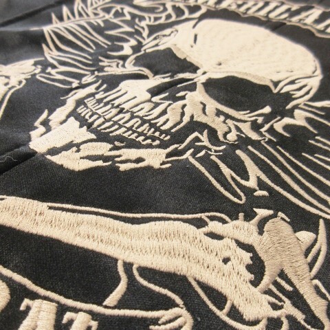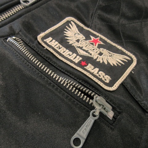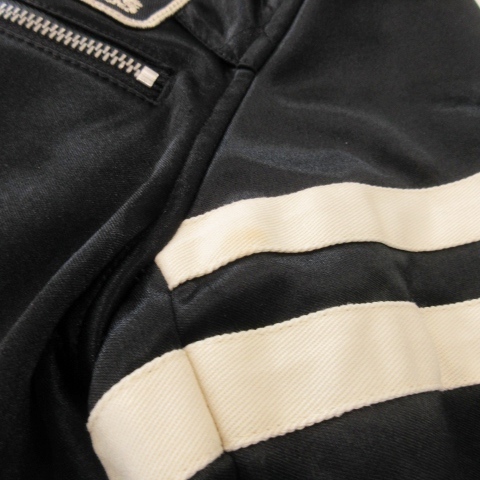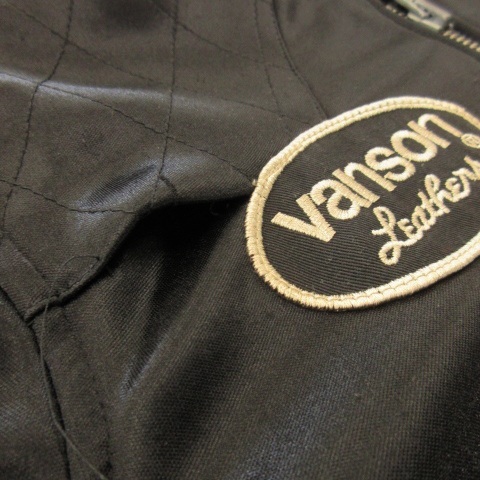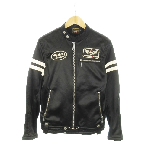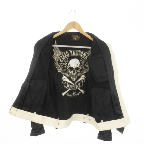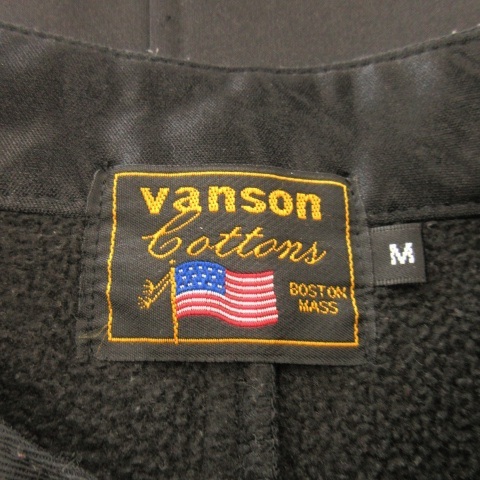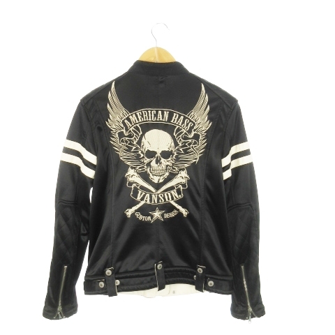 バンソン VANSON ブルゾンジャケット ジップアップ 裏起毛 アメカジ ライン ワッペン ロゴ 刺繍 スカル M 黒 ブラック