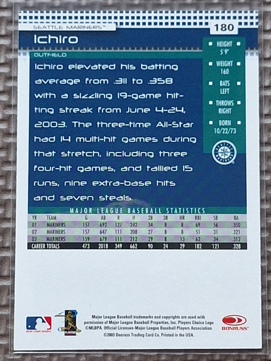 2004 Donruss #180 ICHIRO SUZUKI Seattle Mariners Orix BlueWave